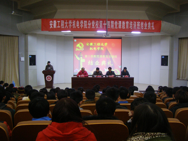 12月13日下午,机电学院举行分党校第十四期党课教育培训班结业典礼。机电学院党委副书记郭全根和有关老师出席典礼。