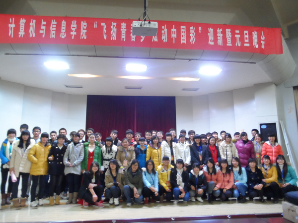 12月13日晚,学校学术报告厅弥漫着喜庆与温馨,计算机与信息学院“飞扬青春梦 炫动中国彩”迎新暨元旦晚会在这里上演。