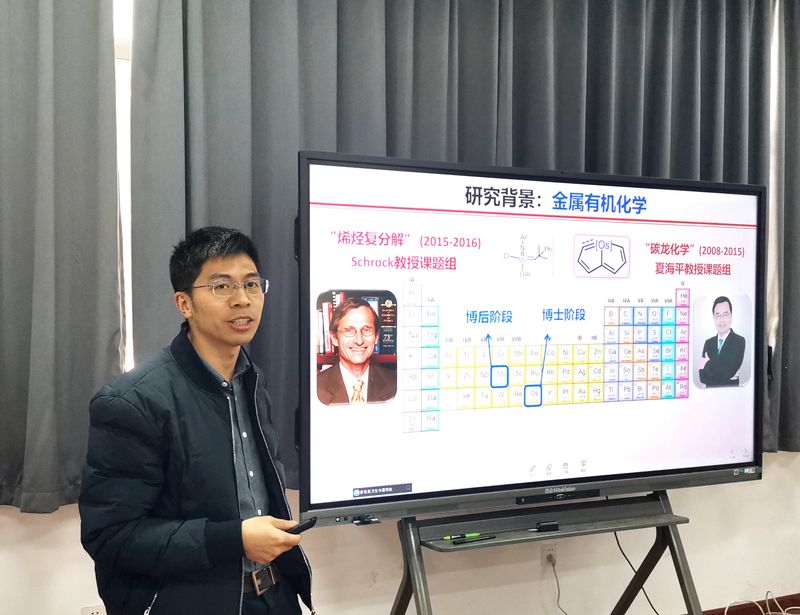 朱从青教授作了题为“锕系金属-金属键化学”的学术报告。他从自身求学经历介绍其个人及其团队在金属有机化学、锕系金属配位化学、小分子活化转化领域的研究工作,详细介绍了他针对f区锕系金属参与的金属-金属键研究受限于合成方法少、产物稳定性差、难以表征等因素而发展缓慢的问题,在基于软硬酸碱理论上,设计了一类新型“双层N-P配体”,成功构筑一系列铀-过渡金属单、双、三键配合物,并对它们的反应性及性能进行了系统研究,并取得了一系列研究成果。