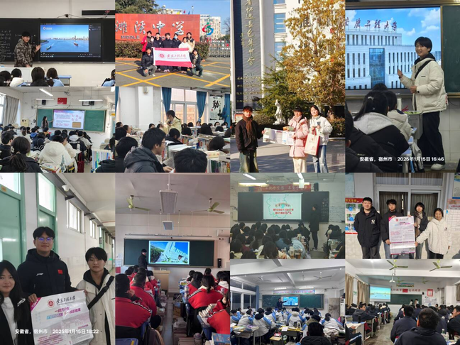 本网讯 为进一步引导在校学生广泛参与志愿服务活动,加强爱校荣校教育,推进“高中高校人才培养一体化”建设,数理与金融学院组织开展2025年寒假志愿服务暨回高中母校招生宣传活动。自1月13日起,学院12支志愿服务团队分别前往安徽天柱山学校、萧县鹏程中学、无为第二中学、淮北市第一中学、淮北市树人高级中学、濉溪中学、濉溪二中、六安毛坦厂中学、铜陵市宏实中学、砀山中学、包集中学等多所高中开展招生宣传活动。