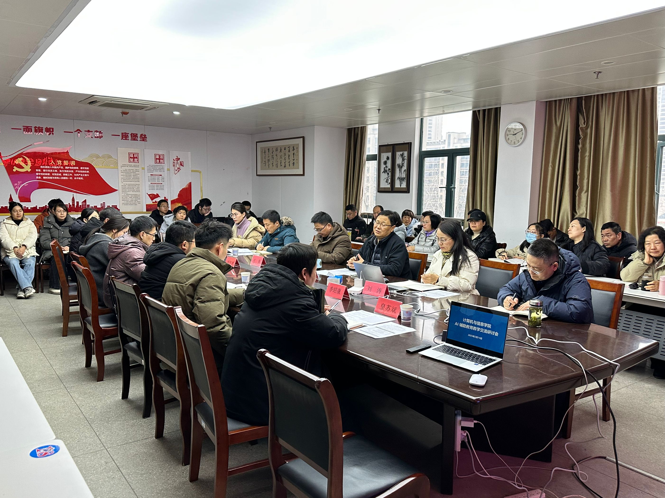 本网讯 随着人工智能(AI)技术在教育领域的蓬勃发展,AI技术为教育教学带来了全新的思路与方法以及前所未有的机遇与挑战。为推动AI辅助教育教学的落地实施,2月14日,计算机与信息学院召开“AI辅助教育教学交流研讨会”。计算机与信息学院院长汪军、副院长刘涛、科技处副处长王勇、院长助理严楠、全体教师参加会议。会议由刘涛主持。
