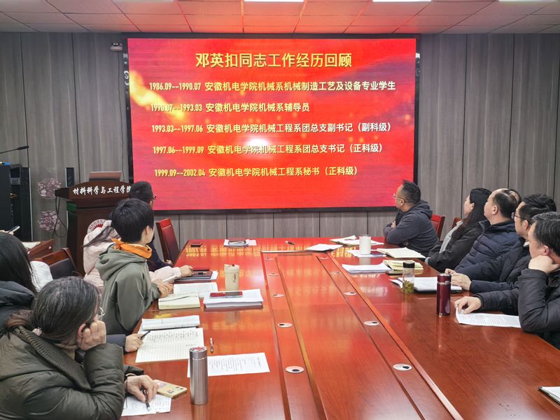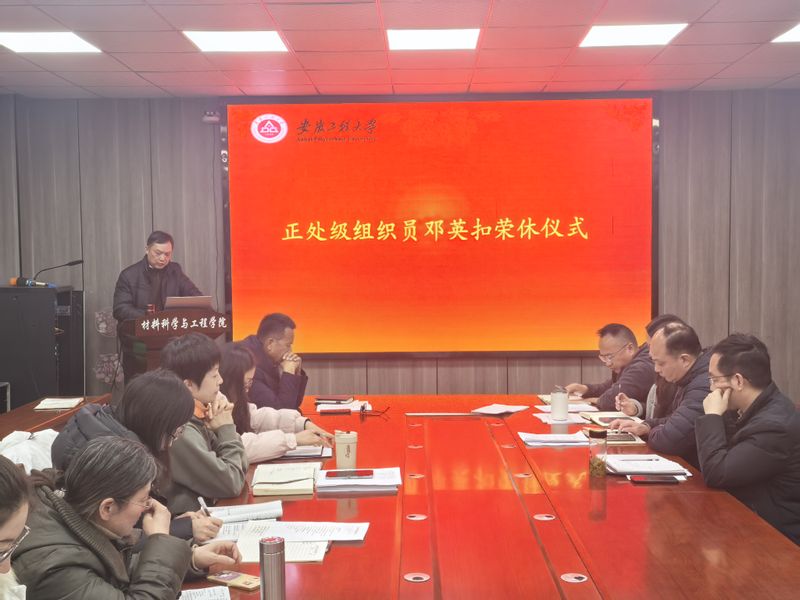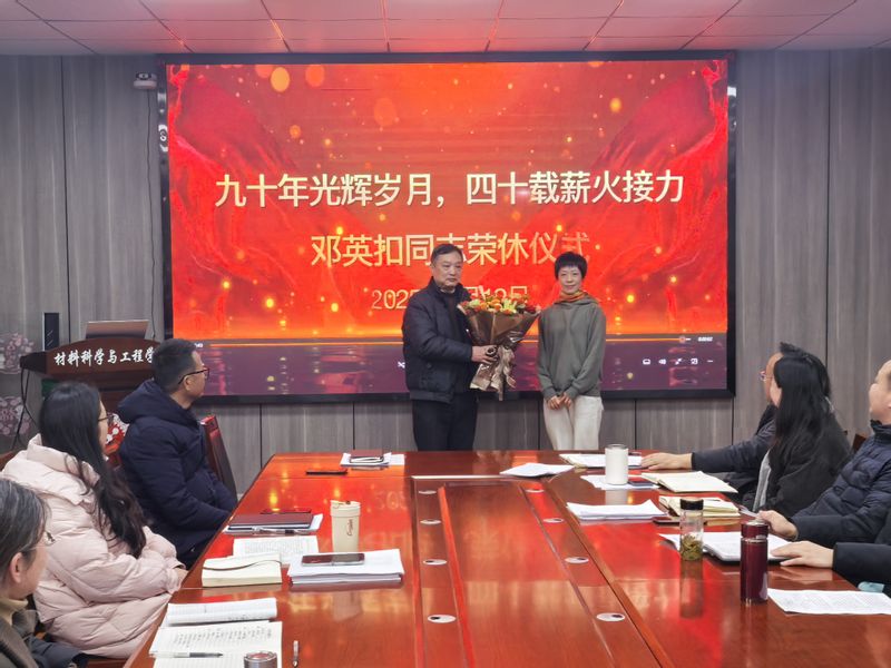 本网讯 2月19日,材料科学与工程学院在B216会议室召开全体教职工大会,为正处级组织员邓英扣同志举行荣休仪式。荣休仪式由郭广春主持。