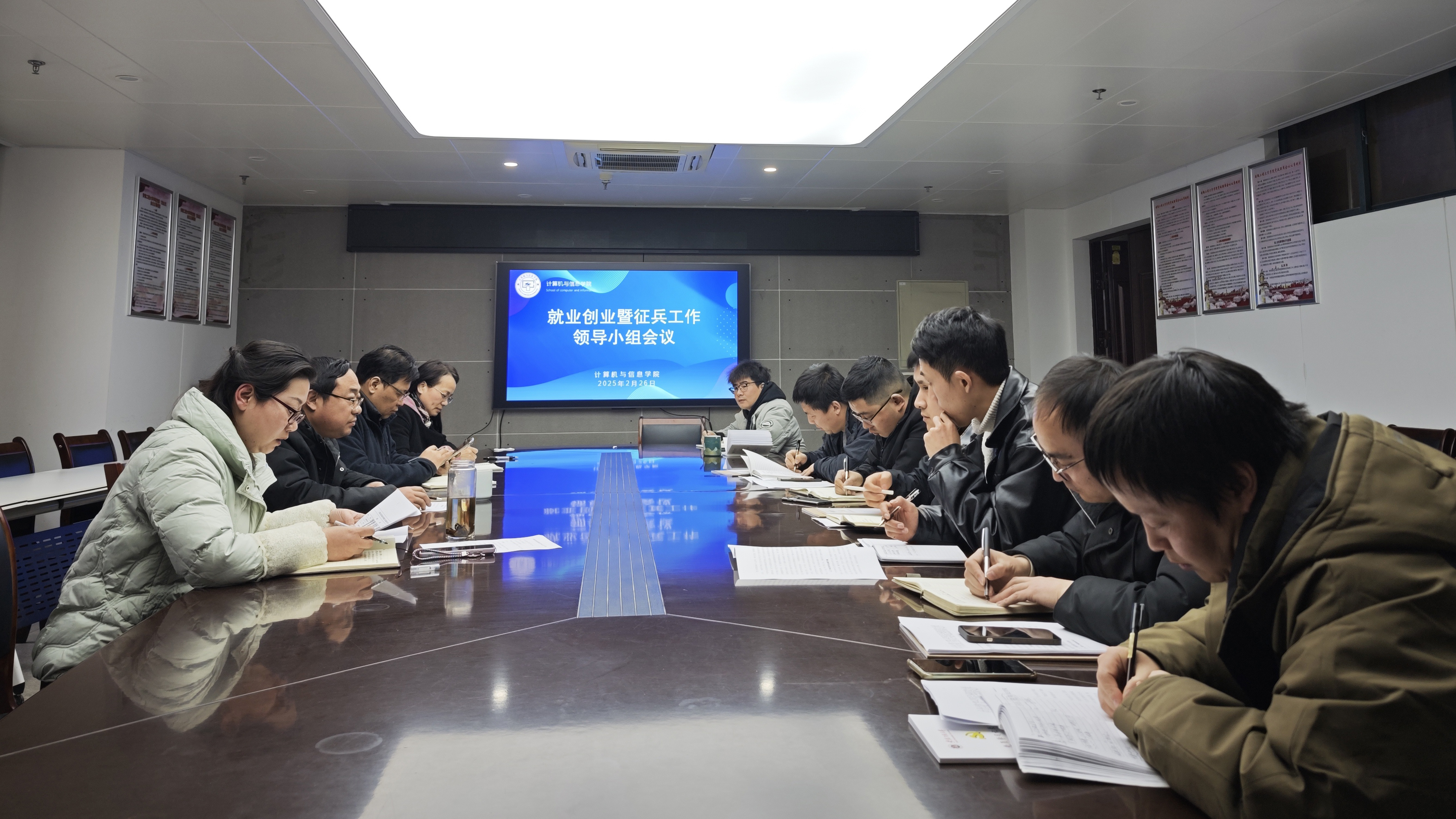 本网讯 为全力做好学院2025届毕业生就业创业和征兵工作,夯实工作基础,为学生就业提供更好的服务和帮助,2月26日,计算机与信息学院召开就业创业暨征兵工作推进会,学院领导班子成员、党政办公室主任、各系主任和毕业班辅导员参加会议。会议由党委副书记孙德茹主持。