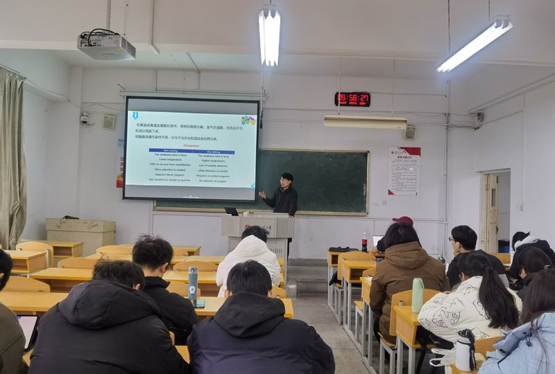 本网讯 为充分发挥优秀教师的示范引领作用,搭建教师间教学经验交流平台,进一步提升教师课堂教学能力,3月3日,生物与食品工程学院在4教301教室组织开展了“金”彩一课示范教学观摩活动,由郑立友老师讲授《食品分析》示范课程,各学院10余名中青年教师参加观摩。
