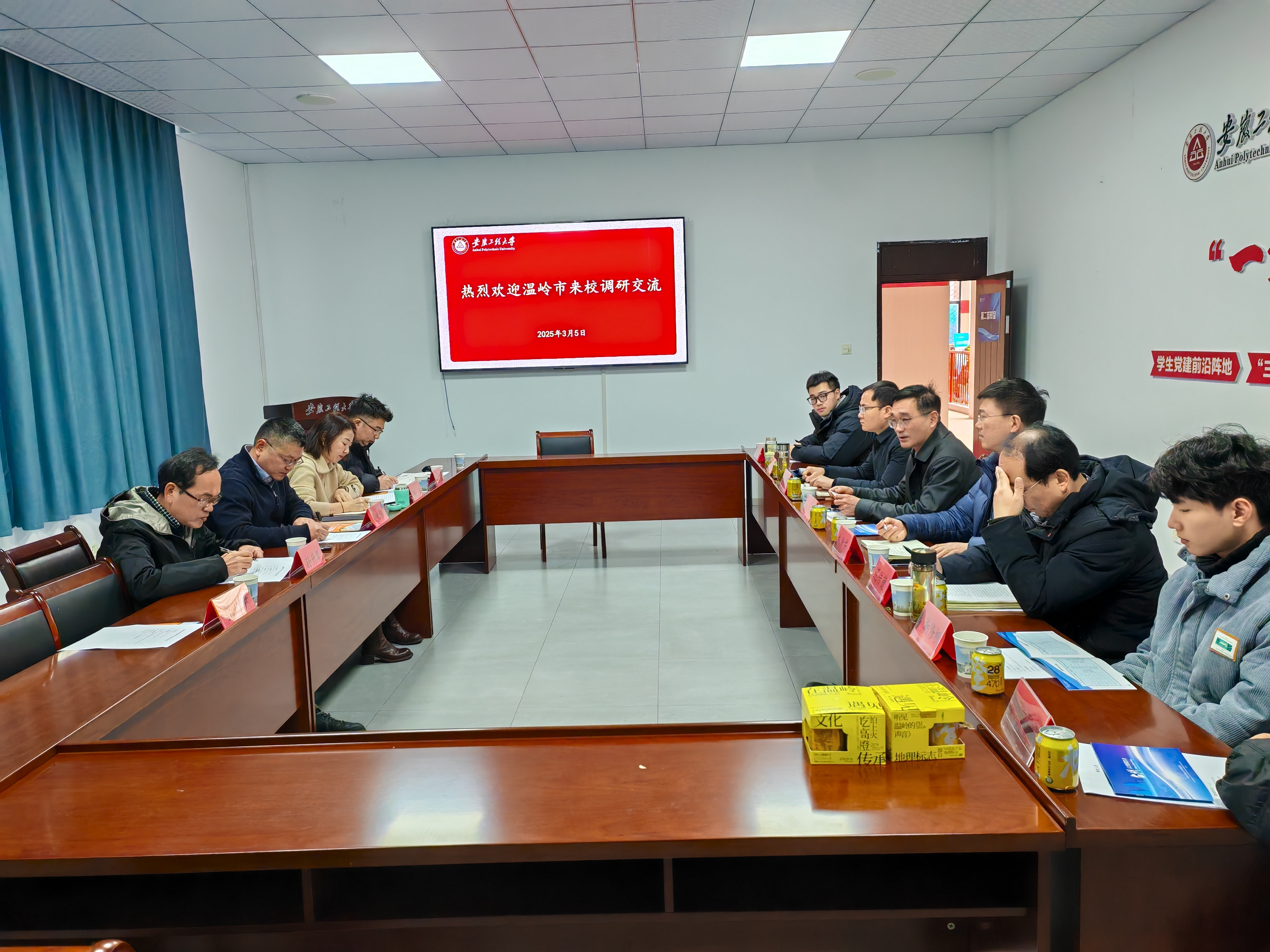 本网讯 3月5日,浙江省温岭市人社局副局长吴永标带领温岭市人才交流中心相关负责人,台州市优质企业到我校开展校园招聘活动。在“一站式”学生社区107召开座谈会,学生处、科技处、机械与汽车工程学院、电气工程学院(集成电路学院)相关负责人、温岭籍毕业生代表参加座谈会。