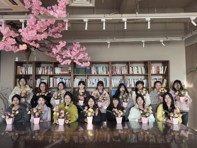 活动现场花香四溢,欢声笑语不断。专业花艺师首先为大家讲解了插花艺术的基本知识、技巧以及各种花卉所蕴含的花语和象征意义。在花艺师的指导下,女生们充分发挥想象力和创造力,将玫瑰、康乃馨、郁金香等各色花卉精心搭配,错落有致地插入花篮中。大家一边交流插花心得,一边互相欣赏作品,现场气氛温馨融洽。活动现场还设置了拍照打卡区,女生们纷纷与自己的插花作品合影留念,记录下这美好瞬间。