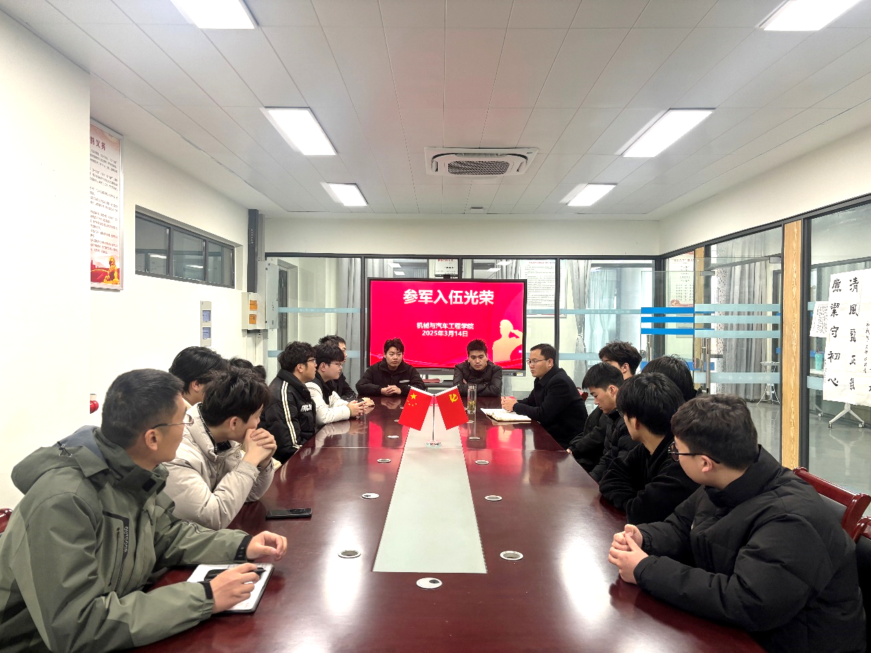 本网讯 为激发青年学子参军报国热情,3月14日,机械与汽车工程学院在国际工程师学院校区3-1-208会议室召开报名2025年秋季入伍大学生座谈会,报名秋季入伍的部分学生参会。会议由学院党委副书记秦广虎主持。