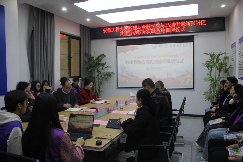 本网讯 3月19日,数理与金融学院在弋江区马塘街道新兴社区开展共建劳动教育实践基地揭牌仪式,马塘街道党工委副书记翟连城、新兴社区党支部书记王明东、社工办主任胡玉翠,数理与金融学院党委副书记何志恒、团委书记和辅导员出席活动,学院重点实践团队学生代表参加。
