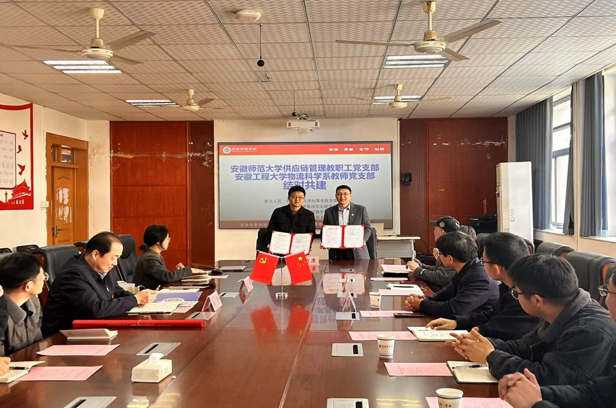 本网讯 为深入学习贯彻“2025年政府工作报告”精神,积极推进党支部结对共建,充分发挥高校间的优势互补作用,推动学院党建工作高质量发展。3月19日,经济与管理学院物流科学系教师党支部和安徽师范大学经济管理学院供应链教工党支部,在安徽师范大学花津校区经济管理学院一楼党教活动中心开展了支部共建活动。安徽师范大学经济管理学院党委书记乔静,RayBetApp官网下载 经济与管理学院党委书记水心宝出席。供应链管理教工党支部、物流科学系教师党支部22位党员教师共同参加活动。本次会议由安徽师范大学供应链管理教工党支部书记方昶主持。