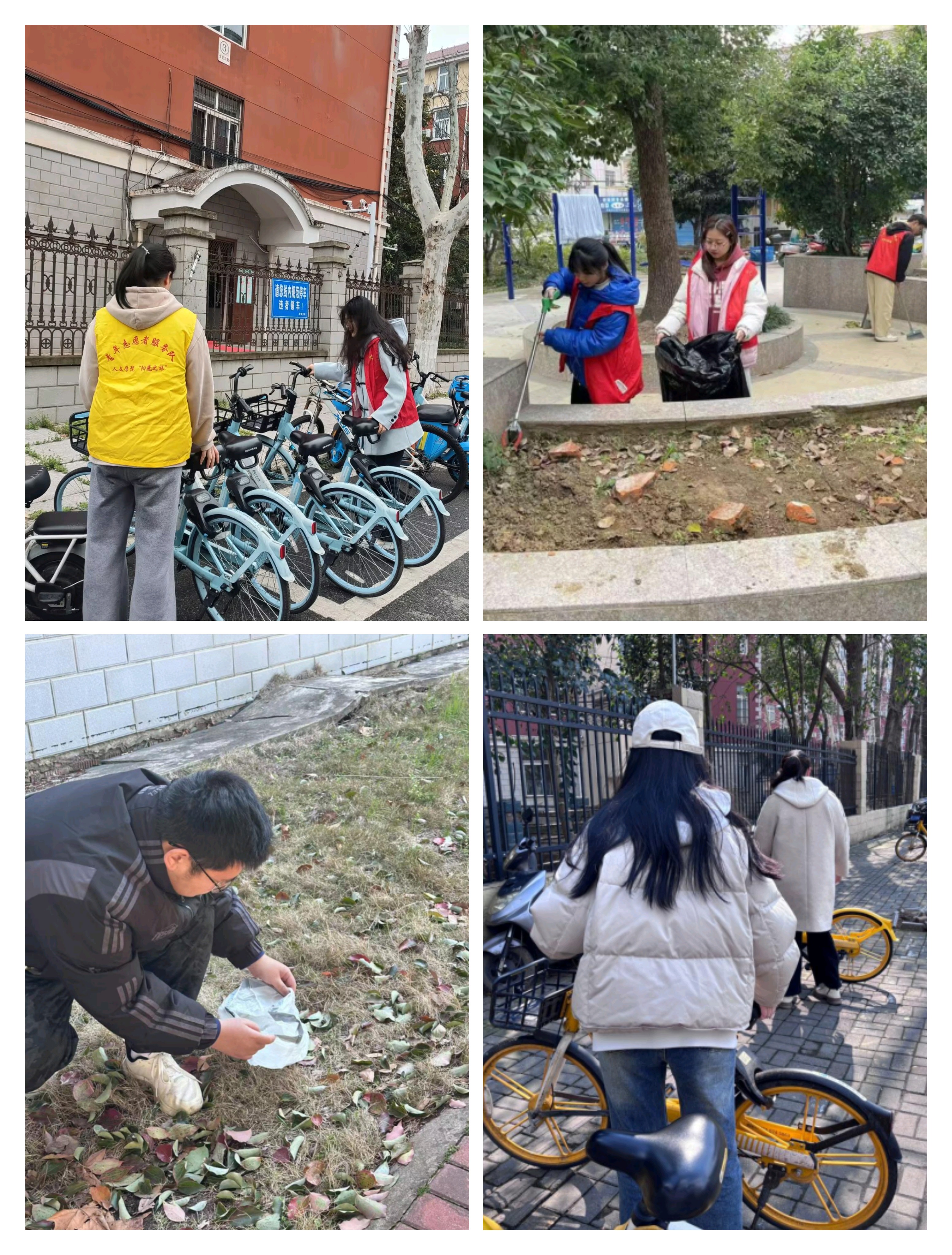 公管研24、社工研24、行管231、法学232、电商法242等团支部,组织团员青年开展校园环境美化志愿服务活动。整齐摆放共享单车、清理校园垃圾、打扫宿舍楼道、擦拭教学楼玻璃……以点滴“小行动”汇聚成推动校园“大文明”的强大力量,为创建绿色、和谐、文明的校园环境注入蓬勃青春活力。