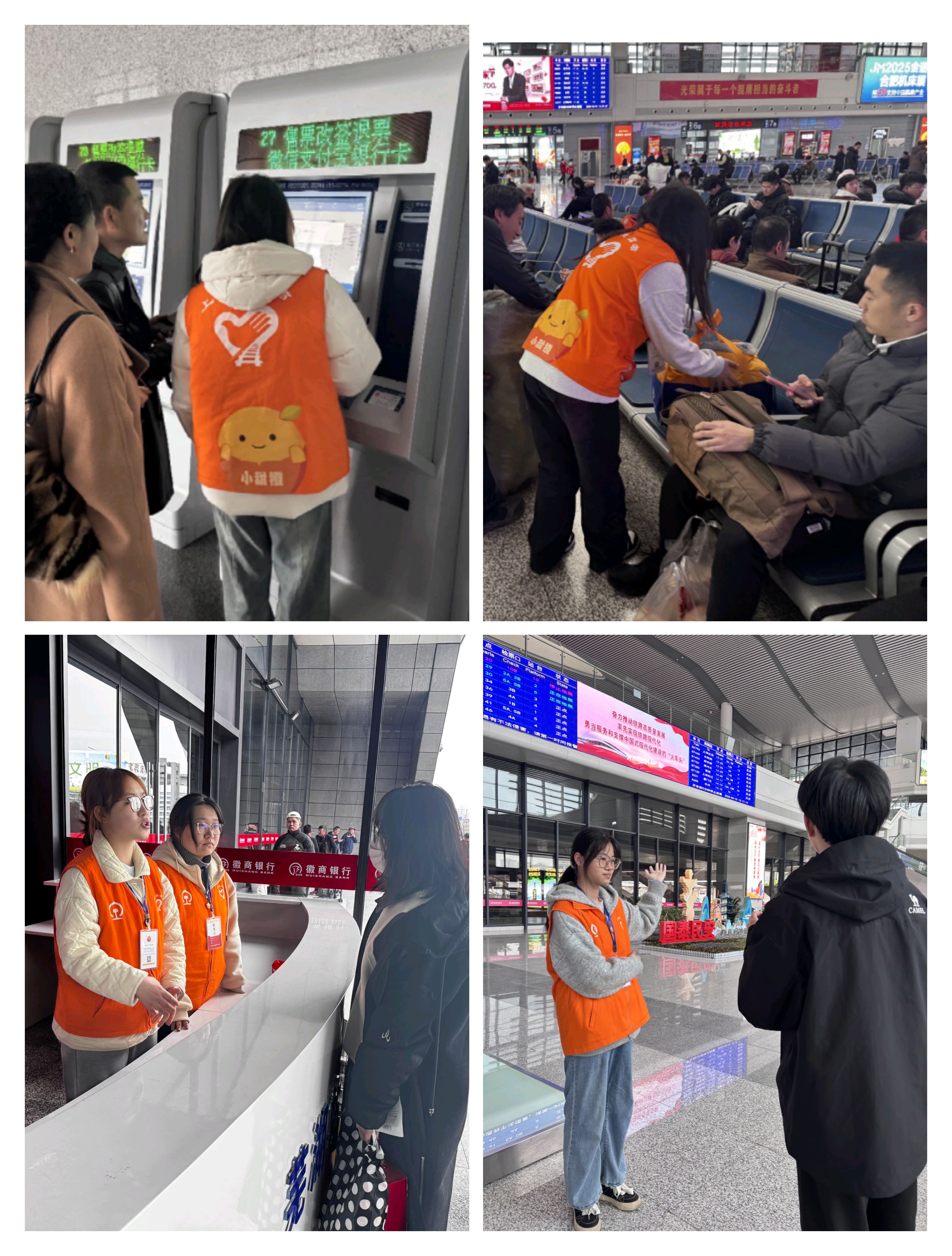 法学241团支部、法学242团支部联合“和谐花”志愿团队共26名志愿者,在芜湖火车站开展志愿服务活动。耐心为旅客解答疑问、帮助旅客查询信息和打印报销凭证,赢得了现场旅客的一众好评。
