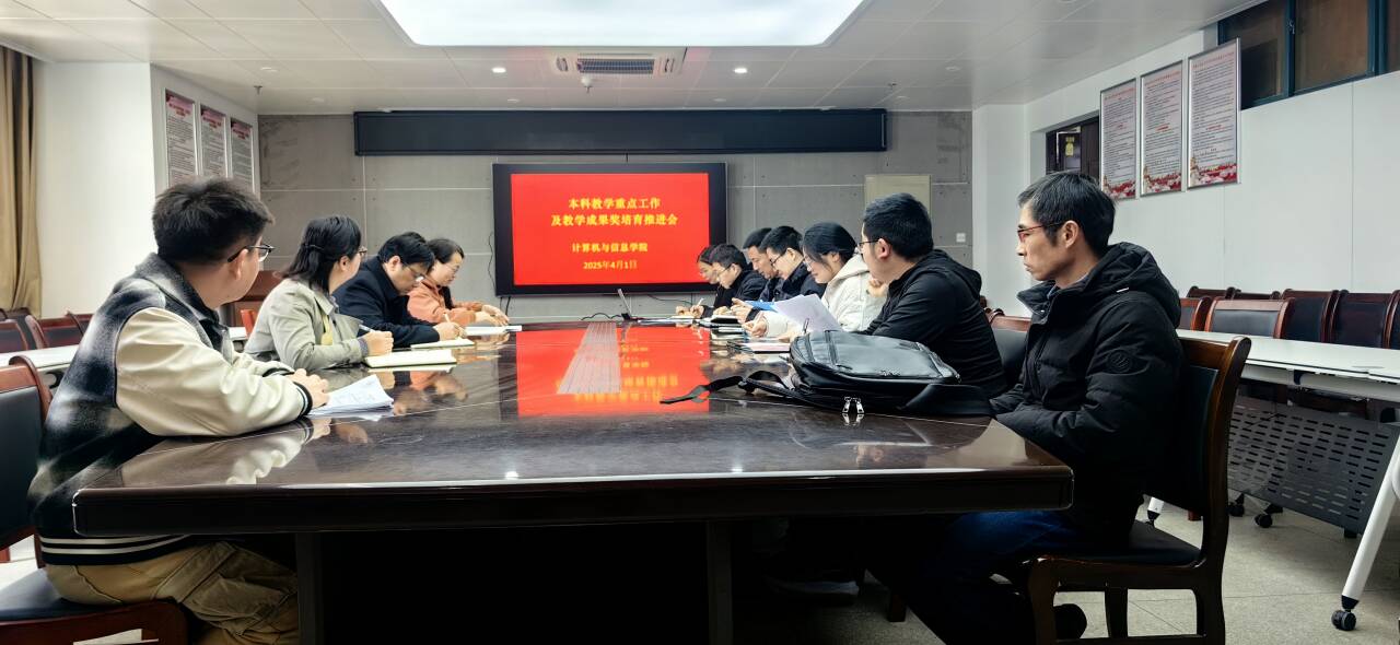 本网讯 为贯彻落实学校教学工作例会会议精神,进一步提升人才培养质量,推动教学成果培育与创新发展,4月1日,计算机与信息学院组织召开学院4月份教学重点工作及教学成果奖培育推进会。学院领导班子、各专业负责人、各中心主任、教学办公室主任、院团委书记和院毕业设计(论文)负责人参会,会议由副院长刘涛主持。
