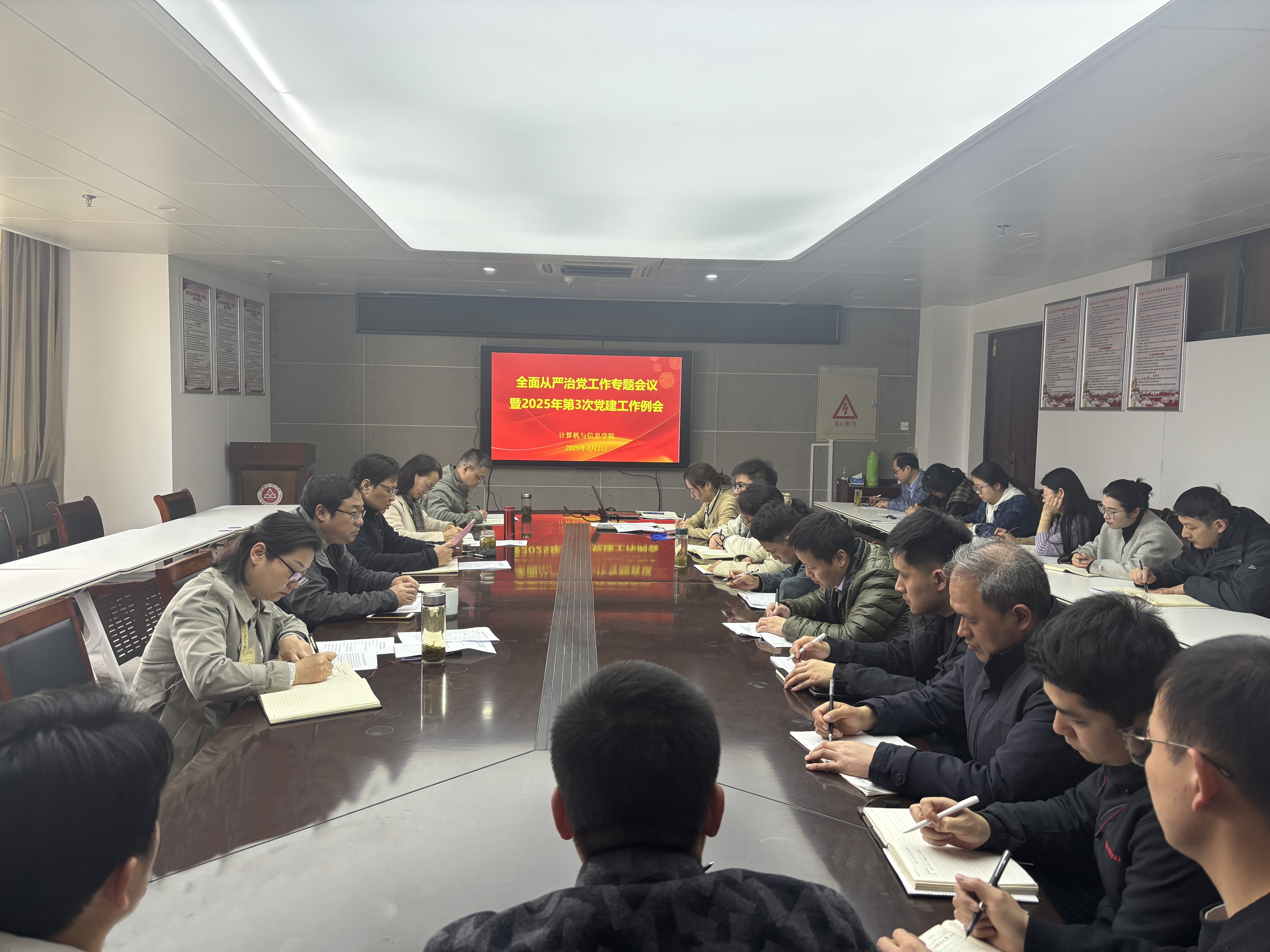 本网讯 4月2日,计算机与信息学院召开全面从严治党工作专题会议暨2025年第三次党建工作例会,学院领导、各党支部书记、教师支部委员、党政办主任、组织员、团委负责人参加了会议。会议由院党委书记李卫东主持。