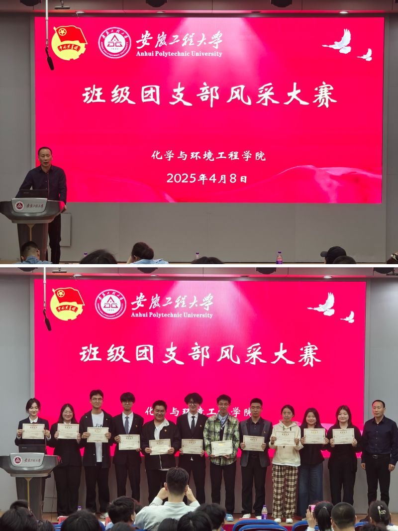 本网讯 为进一步加强基层团组织建设,展示团支部的青春活力与特色风采,化环学院于2025年4月8日在5教117教室举办了2025年班级团支部风采大赛。本次大赛以“勇担时代大任·谱写青春华章”为主题,吸引了众多团支部的积极参与。学院党委副书记胡承功出席活动,学院辅导员担任评委。