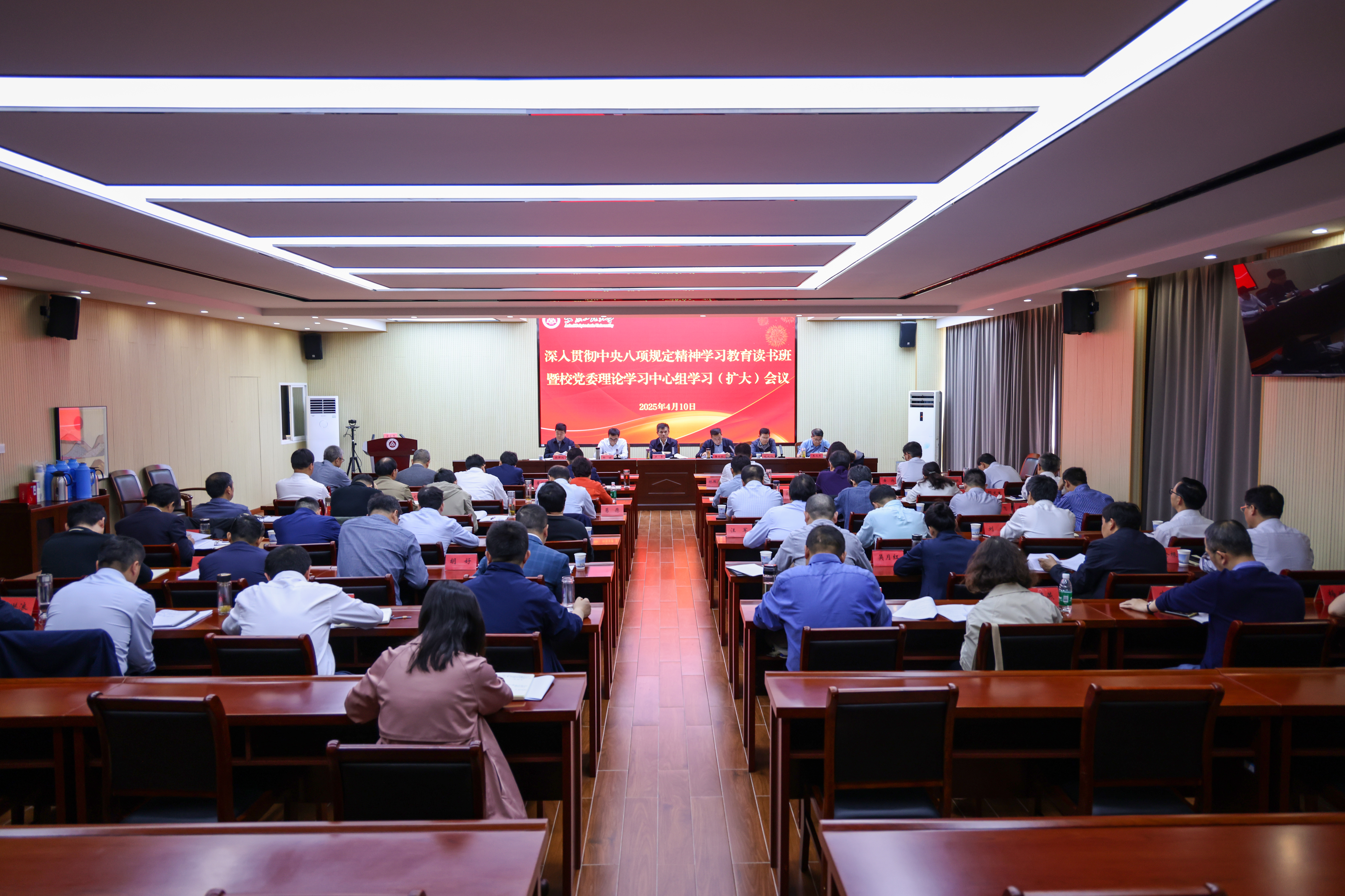 本网讯 4月9日至4月10日,学校举行深入贯彻中央八项规定精神学习教育读书班暨校党委理论学习中心组学习(扩大)会议,校领导,校党委理论学习中心组成员,二级党组织、各学院、各部门主要负责人参加会议,校党委书记卢平主持开班式和集中交流研讨暨校党委理论学习中心组学习(扩大)会议并讲话。