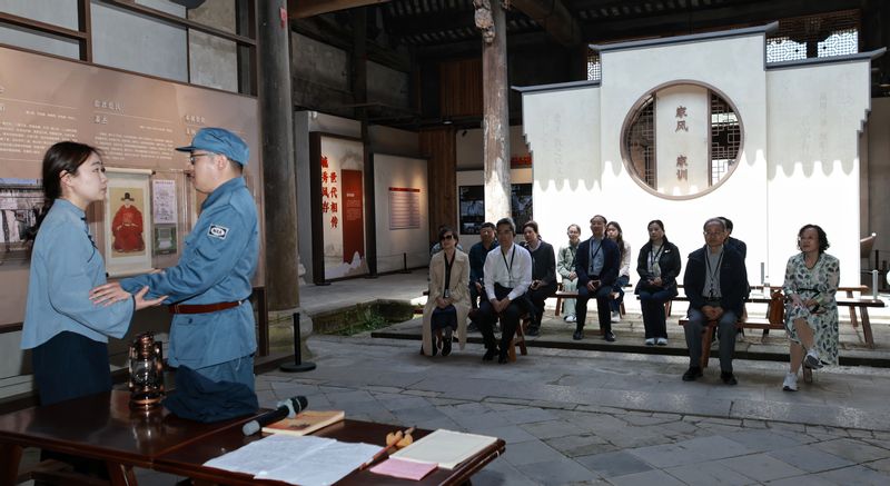 在中国宣纸文化园,专家组现场观摩了由宣城市第八小学教师、宣城市阳光中学教师和我校马克思主义学院教师开展的大中小学思政课实践教学展示。在泾县查济家风馆,专家组现场观看了互动式实践教学红色家书诵读。专家组还实地调研了新四军军部旧址纪念馆等实践教学现场。