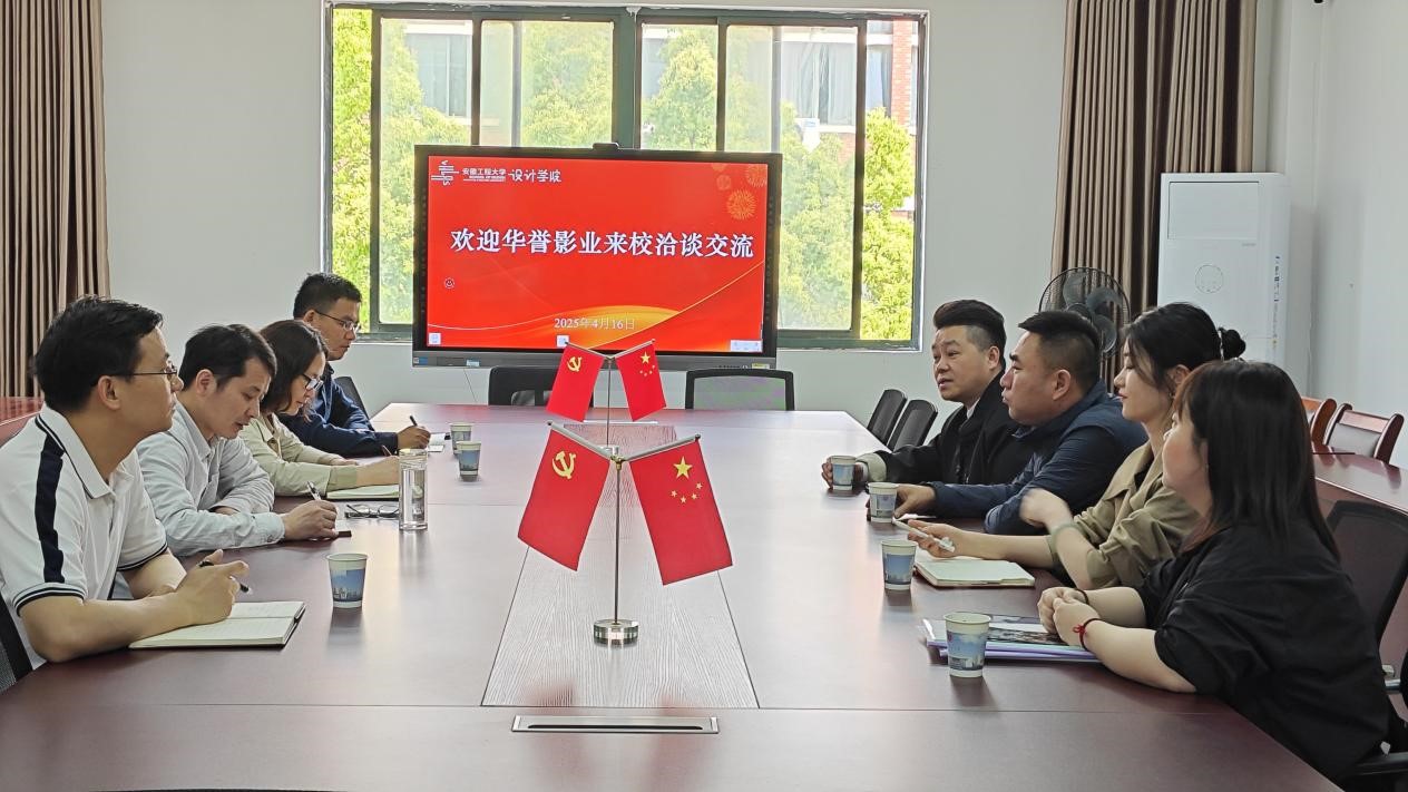 本网讯 4月16日,设计学院与华誉影业举行产学研合作洽谈会。华誉影业创始人刘万军,总经理钱志刚,设计学院党委副书记(主持工作)彭海燕,常务副院长张学东,新媒体设计系相关专业教师等参会。
