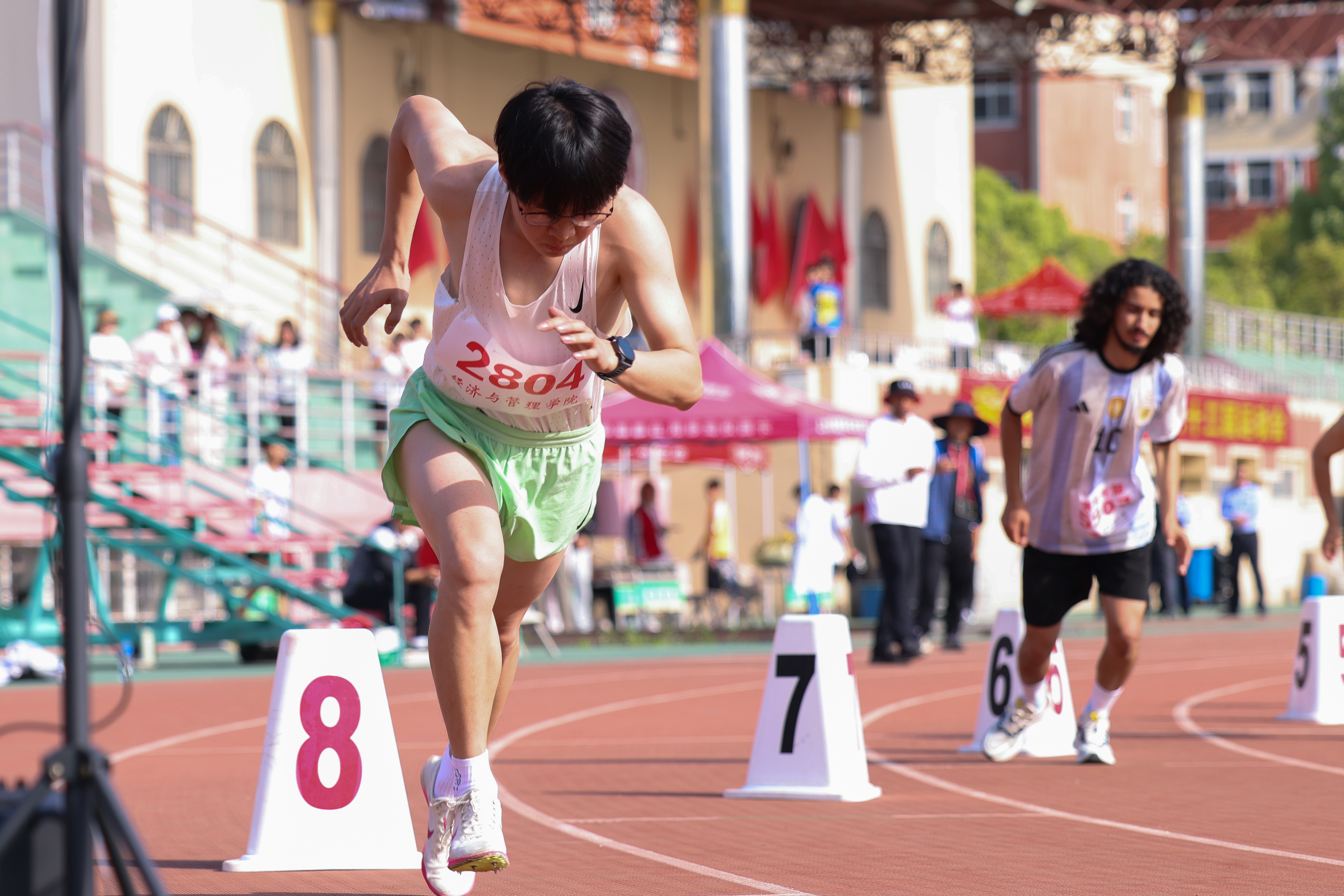 本网讯 发令枪响,健儿风驰电掣一往无前;横杆高悬,选手身轻如燕跨越极限。跑道之上,挥洒的汗水浇灌朝气;沙坑之中,坚定的脚印刻写执着。这边,学生们步伐矫健尽显青春活力;那边,老师们身姿敏捷依旧风采昂扬。让我们凭镜头为弦,以画面作曲,奏响起拼搏的乐章。