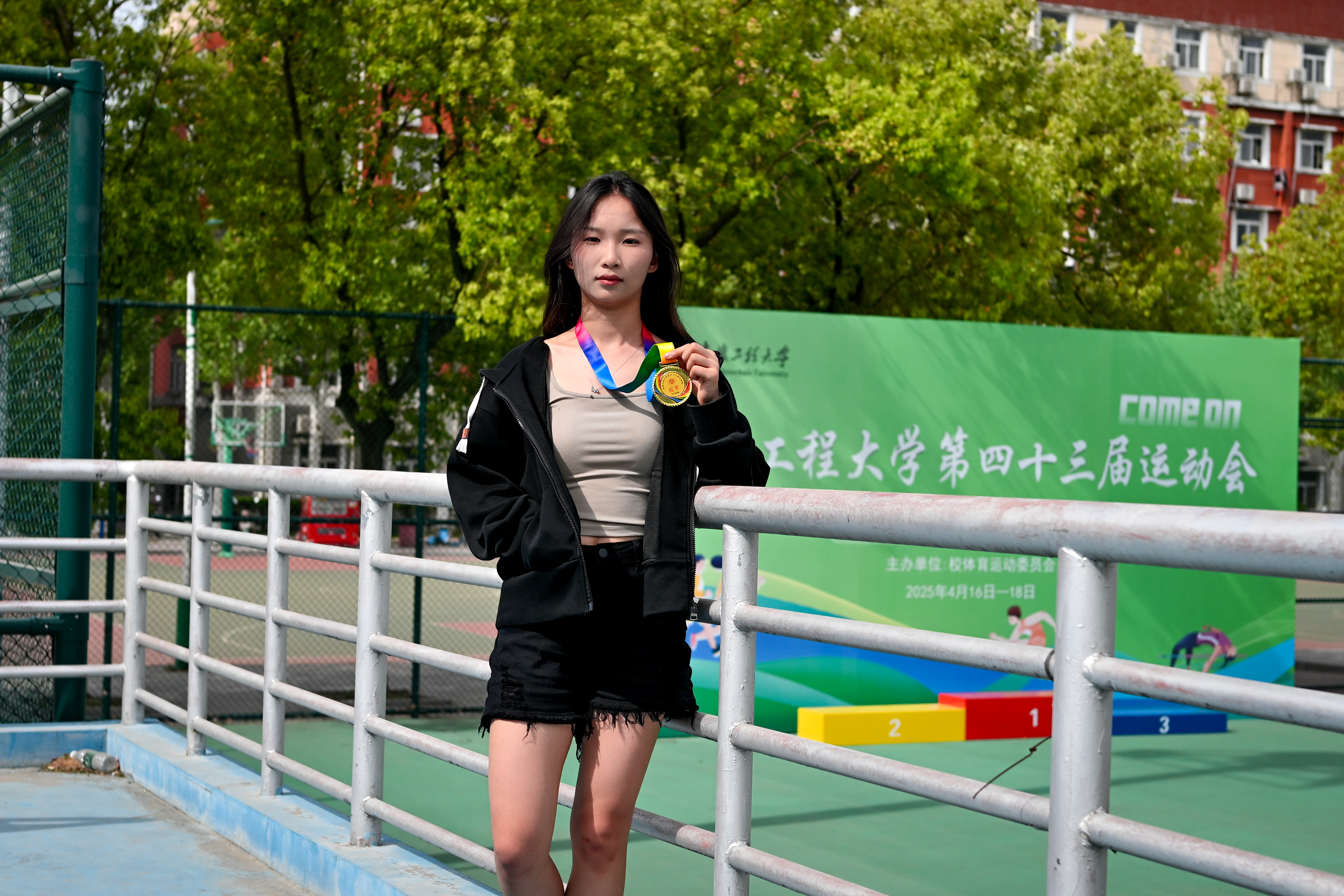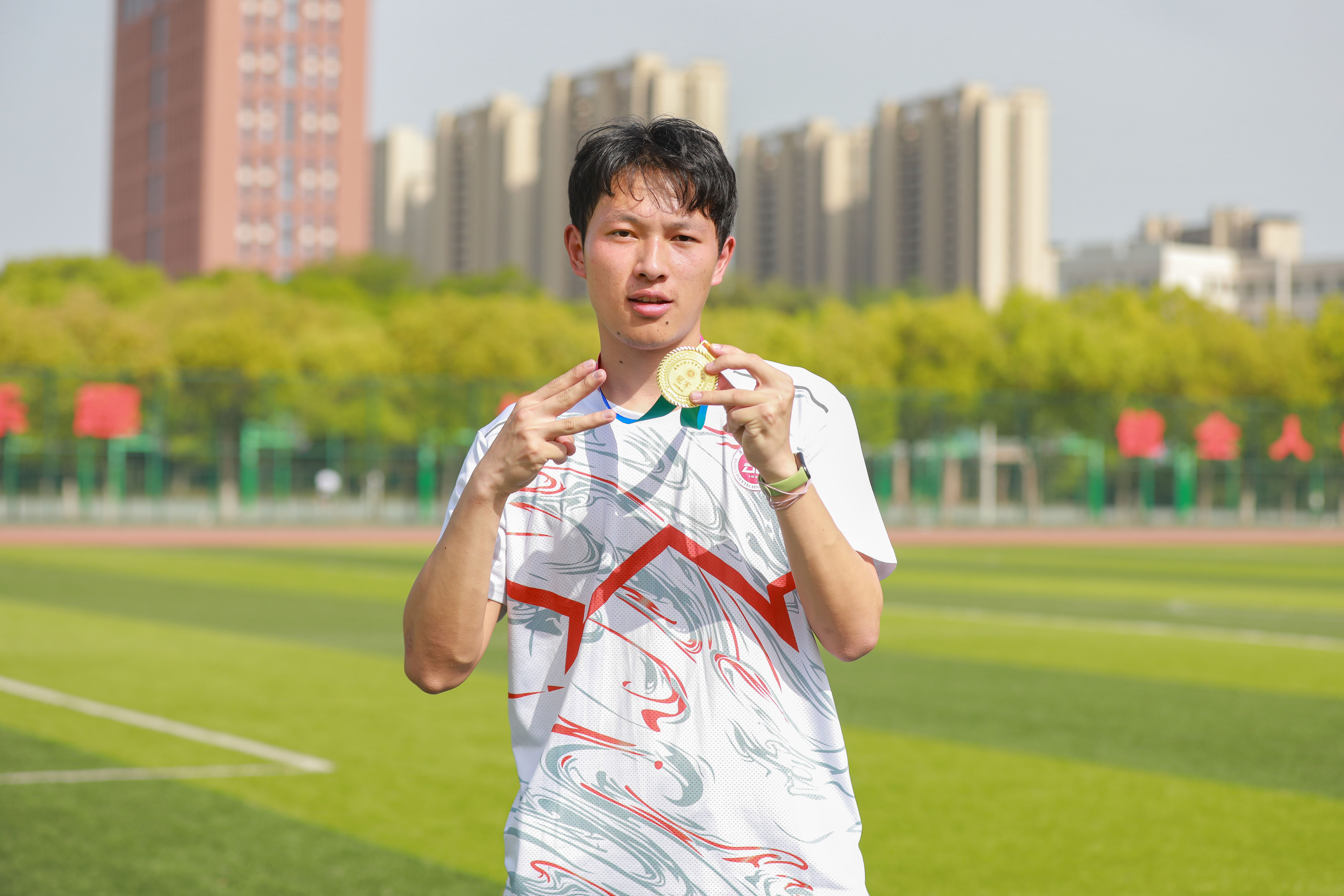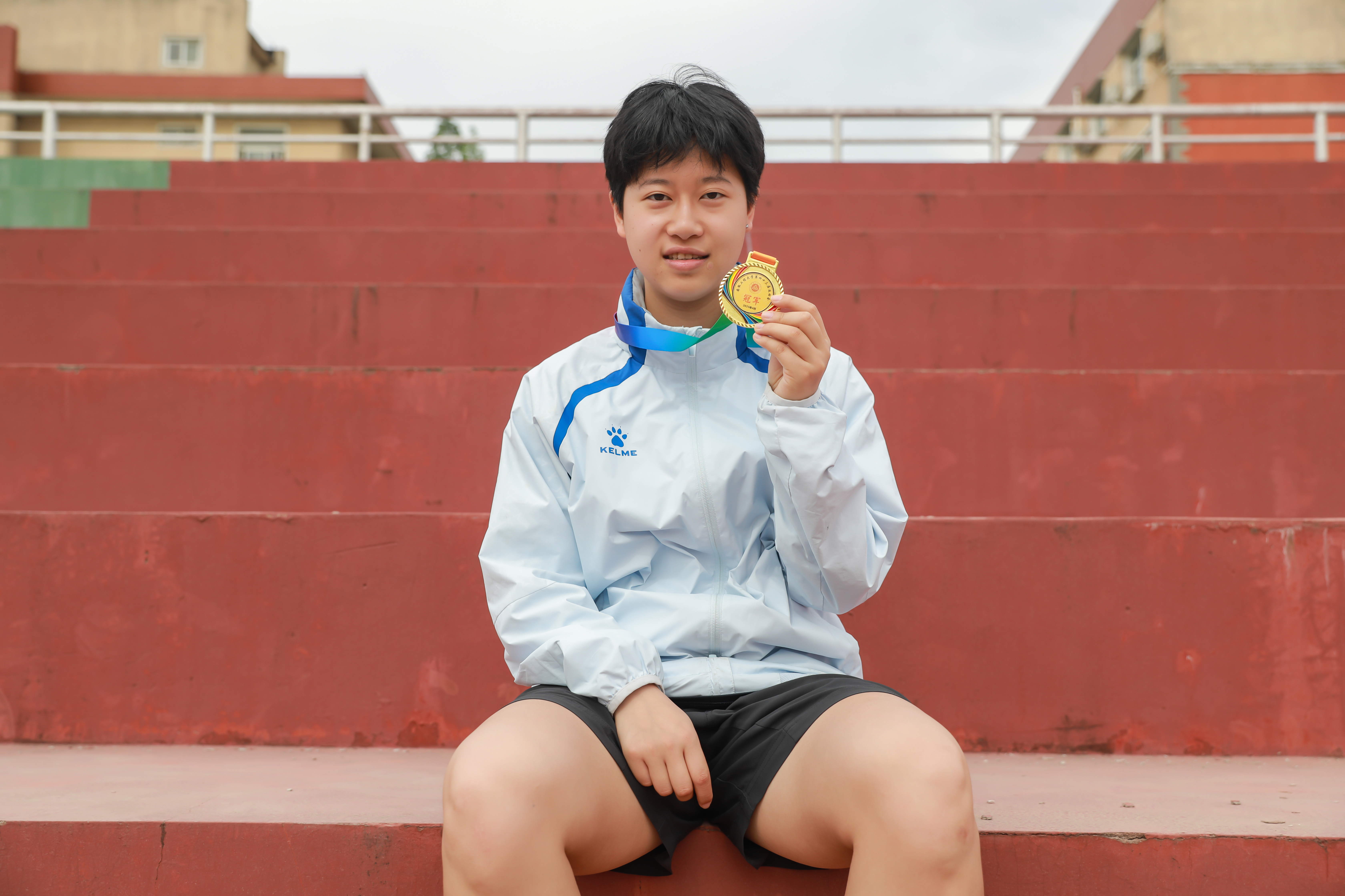 “蝉联是往日汗水的馈赠,每一步的扎实,汇聚成此刻的荣耀。努力终凝作勋章,让我在赛场上发光。”