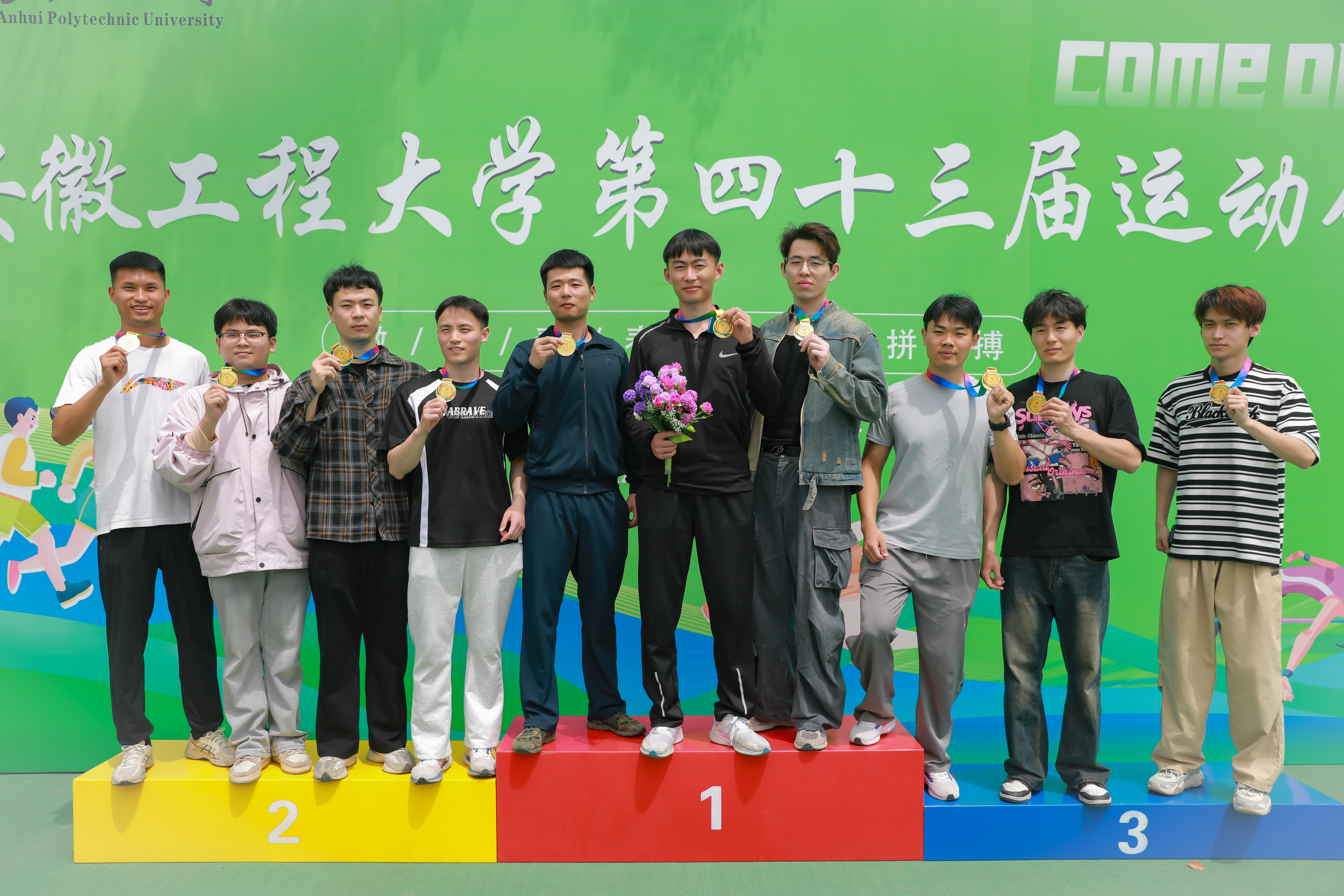 本网讯 为期3天的校第43届运动会完成各项赛程,圆满落幕,本届运动会共产生151枚金牌,打破5项校运动会纪录。研究生部、体育学院、机械与汽车工程学院分别获得学生甲组团体成绩前三名,计算机与信息学院、机械与汽车工程学院、电气工程学院分别获得学生乙组团体成绩前三名;化学与环境工程学院、教辅党总支、马克思主义学院分别获得教工组团体成绩前三名。体育学院、材料科学与工程学院、机关党委荣获优秀组织奖。让我们一起跟随镜头领略冠军风采吧!