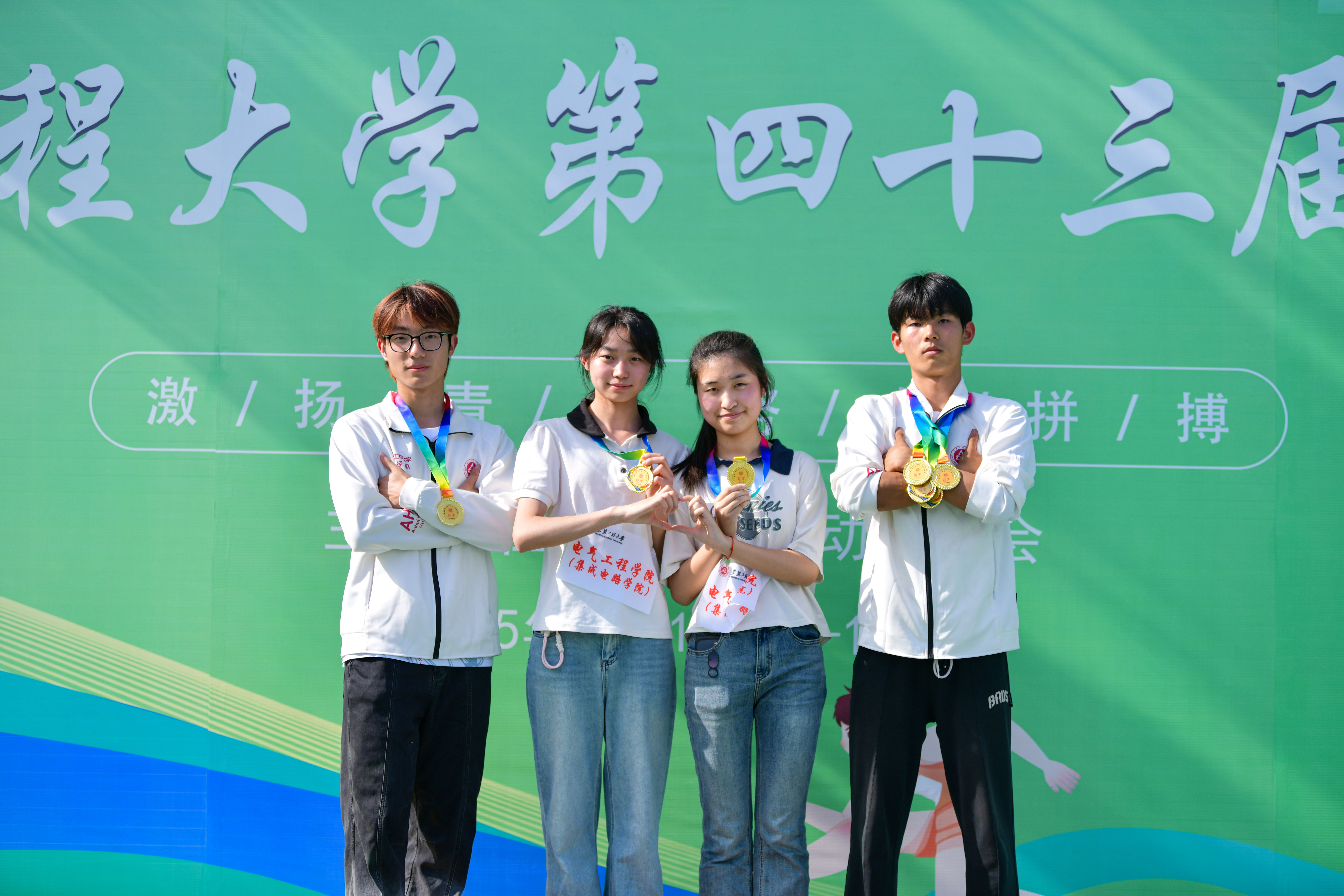 “手中的接力棒是速度与毅力的传递,每一次的冲刺都是四颗炽热的心对胜利的渴望,我们将继续用速度书写辉煌!”