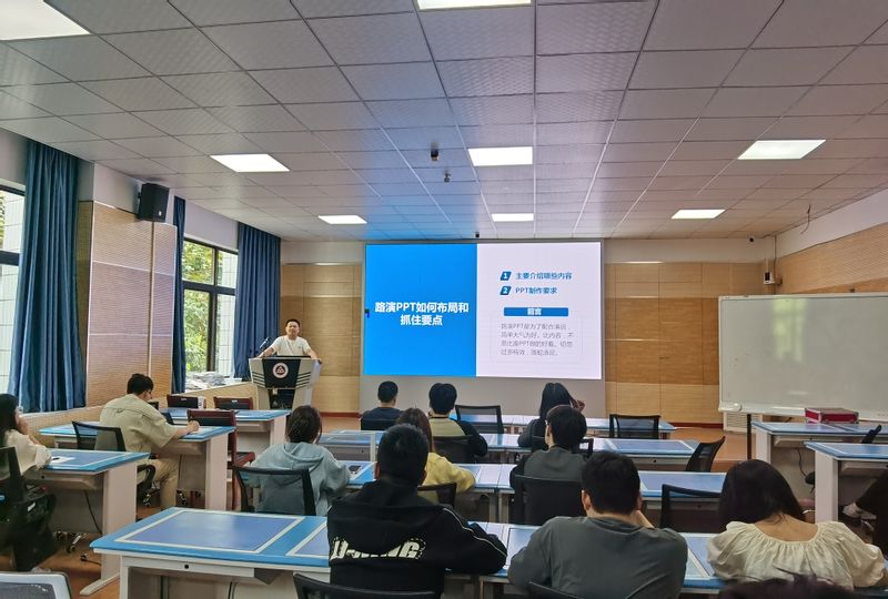 吴蒙然老师通过对获奖作品的全面解读,就赛前准备、PPT核心内容和要点布局、作品细节打磨、答辩能力提升等各个方面进行了经验分享,为参会师生带来了一场生动而富有实践指导意义的报告。他鼓励同学们将所学知识与社会发展、学院特色紧密结合,培养创新、创意、创造、创业的意识和能力,努力实现自己的青春梦想。