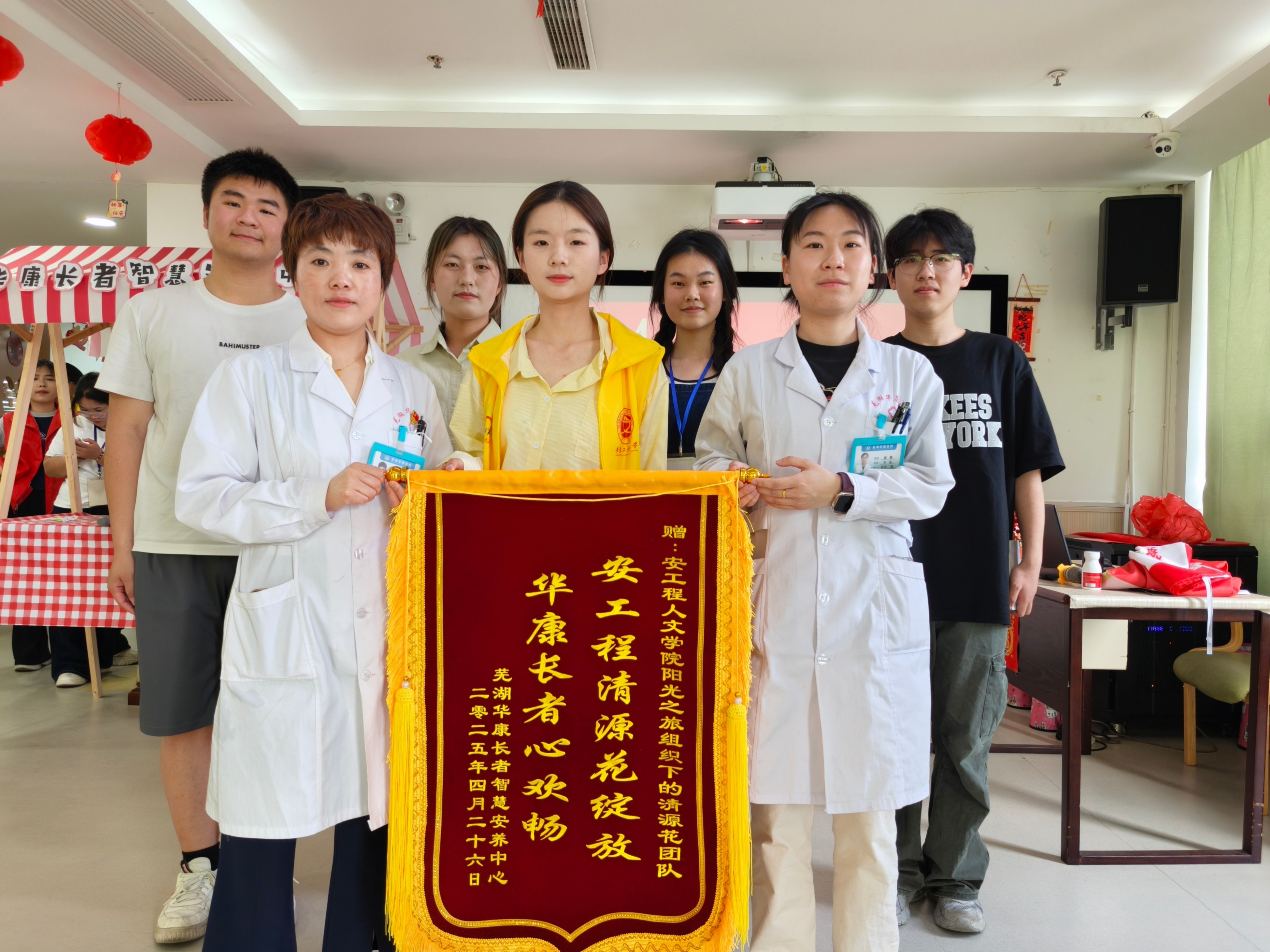 本网讯 近日,鸠江区官陡街道星辰社区芜湖华康长者智慧安养中心向我校第十三季“团百花”学雷锋志愿服务行动银奖项目“清源花”志愿团队赠送锦旗,以此表达对人文学院志愿者的感谢。