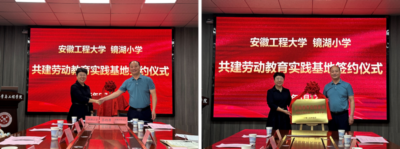 本网讯 为深入推进大中小学思想政治教育一体化建设,打造党团队一体化育人链条,学校与镜湖小学依托梦溪农场和劳动教育先锋示范班合作共建劳动教育实践基地。5月12日,双方在B216举行签约仪式,校纪委副书记、纪委办主任、劳动教育先锋示范班指导老师郭广春、校管委会常务副主任陈阳、教务处副处长胡孝忠、学生处副处长杜松涛以及材料学院、纺服学院、生食学院团委书记等参会,镜湖小学教育集团党支部书记、校长赵玲、党支部专职副书记张学梅等参加。仪式由材料学院党委副书记方玖胜主持。