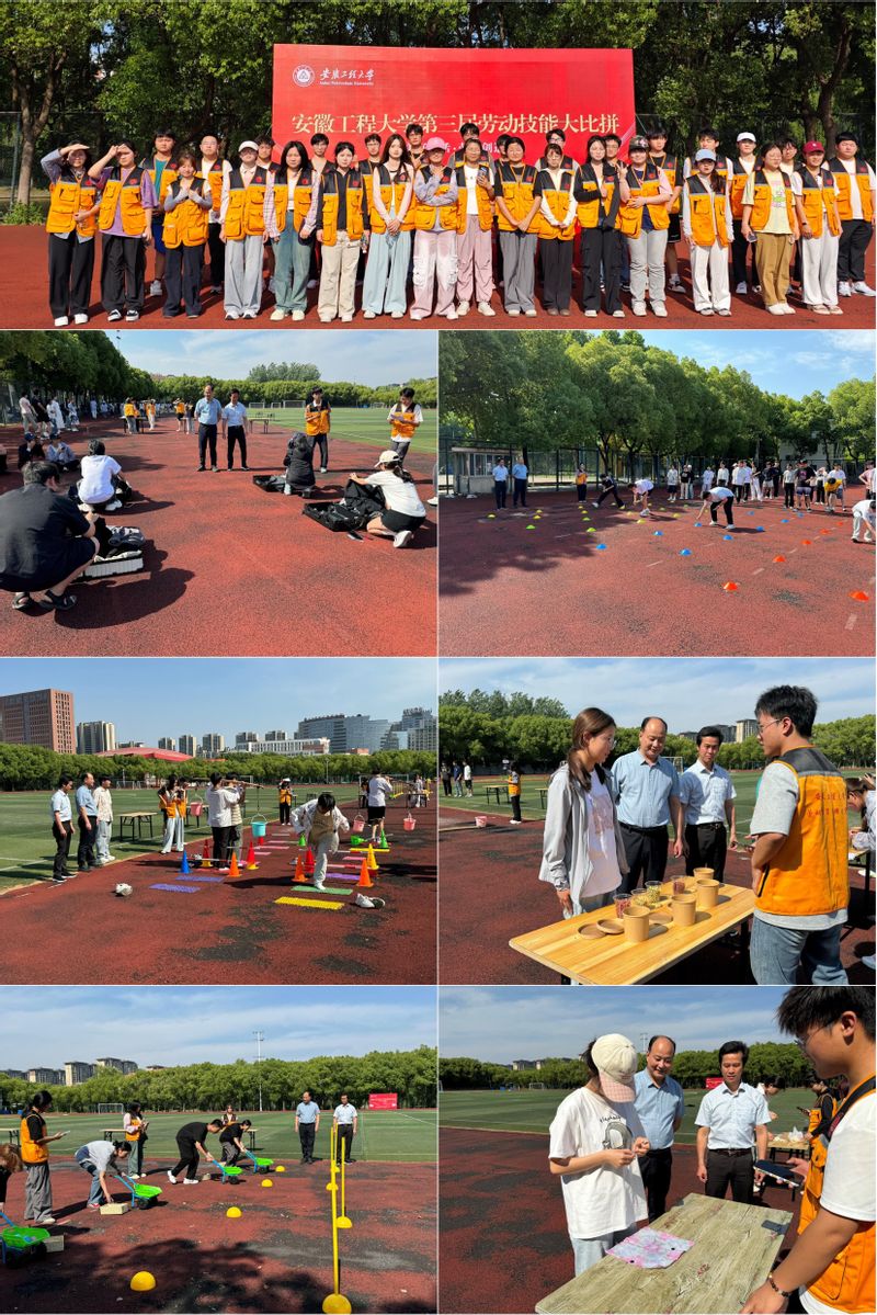 本网讯 5月14日,由教务处、学生处、团委主办,材料科学与工程学院承办的第三届劳动技能大比拼活动在第二田径场举行。来自全校各学院的15支队伍,学校劳动教育先锋班参加活动,教务处副处长胡孝忠和材料科学与工程学院党委副书记方玖胜到场指导。