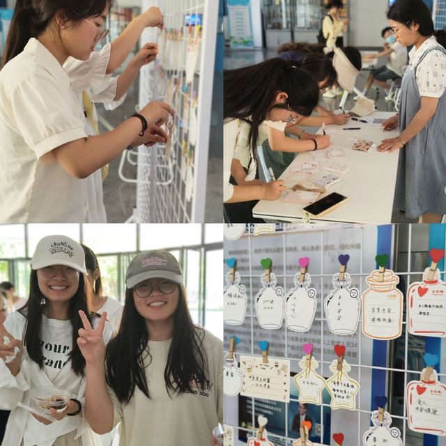 心愿新语,暖心供给。学生会心理部工作人员在学院一楼大厅布置了“心愿墙”和“暖心供给站”,吸引众多参与者在心愿墙上认真写下关于学习、生活、工作等的美好心愿,并合影。在“暖心供给站”,来往的师生们驻足品尝美味冰粉,在炎炎夏日中感受学院提供的清凉与甜蜜。生制243班叶瑞芳表示,本次活动形式新颖且有趣,自己在心愿墙上许下了对未来的美好期望,希望通过自己的努力,能够实现这一小小愿望。