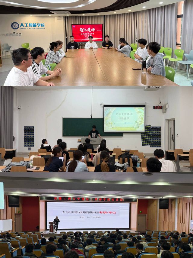 宣讲环节,成功考研毕业生结合自身经历,对考研政策解读、院校专业选择、备考计划制定、复试调剂技巧等关键环节进行详细分享,参与学生受益匪浅。宣讲活动还邀请校外专家和专业教师参与,他们结合大数据分析行业发展趋势,对近几年考研政策变化进行深度剖析,帮助学生了解报考条件、考试科目调整等信息,指导学生根据自身兴趣、能力和职业规划科学定位目标院校和专业。