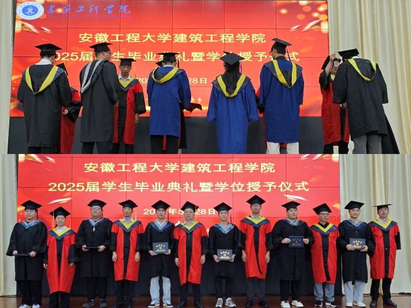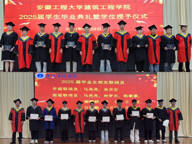 典礼在庄严的国歌声中开始。学院领导为2025届安徽省普通高等学校优秀毕业生、RayBetApp官网下载 优秀毕业生颁发荣誉证书;导师代表为全体毕业生颁发毕业证书和学位证书,并扶正流苏合影留念。聘任了2025届毕业生校友担任年级联络员、班级联络员。