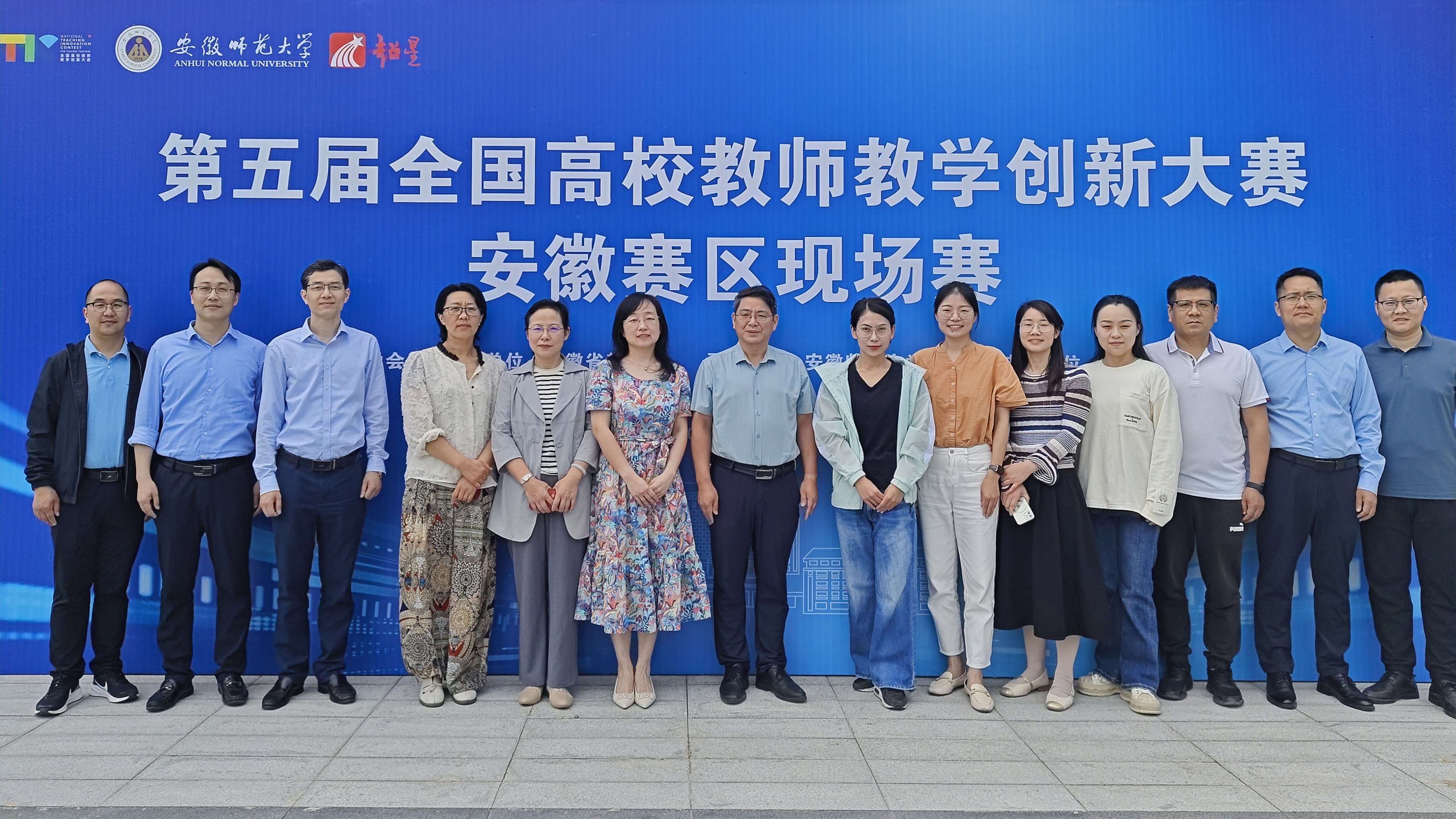 本网讯 日前,由安徽省教育厅主办、安徽师范大学承办的第五届全国高校教师教学创新大赛安徽赛区选拔赛收官。我校斩获一等奖6个、二等奖6个、三等奖2个,其中2支代表队将参加全国赛。学校荣获优秀组织奖。赛事期间,副校长王成军到现场看望比赛选手并鼓励他们赛出水平、赛出风格。