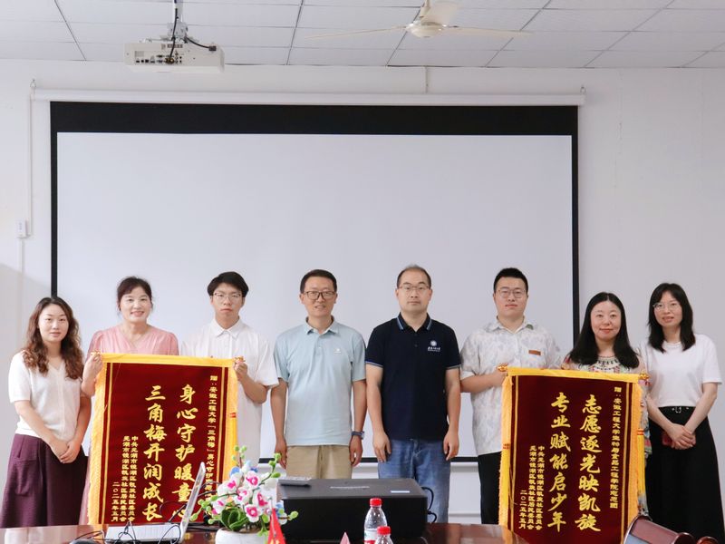 本网讯 6月12日,芜湖市凯旋社区党委书记胡之香、党委副书记佘荣荣以及关工委执行主任解军荣一行来生物与食品工程学院为学院志愿服务团、团百花“三角梅”身心守护志愿服务团队赠送锦旗。校团委兼职副书记姚伟波、学院党委副书记王彦青、团委负责人何祥玲以及志愿团队负责人参加此次授旗仪式。仪式由何祥玲主持。