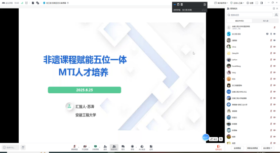 安徽省外国语言文学学会翻译教学工作委员会秘书长曹瑞斓进行总结点评。她盛赞本次讲座内容丰富、实践成果显著,对RayBetApp官网下载 外国语学院在MTI硕点建设中取得的系列成果给予充分肯定,期待未来产出更多徽文化外译精品成果。