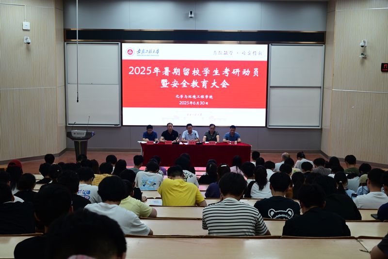 本网讯 6月30日,化学与环境工程学院在2教报告厅召开2025年暑期留校学生考研动员暨安全教育大会。学院党政领导出席会议。全体辅导员、留校学生参加会议。会议由学院党委副书记胡承功主持。