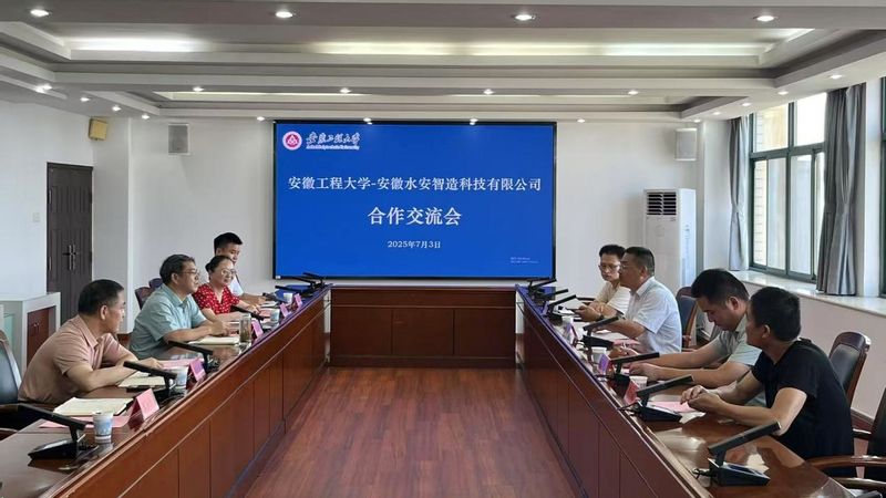 本网讯 7月3日,安徽水安智造科技有限公司总经理王龙一行来校调研交流并开展项目推进工作。安徽省人大常委会委员、九三学社安徽省委会常委、我校副校长王成军出席调研交流会,科技处、机械与汽车工程学院相关负责人参加。