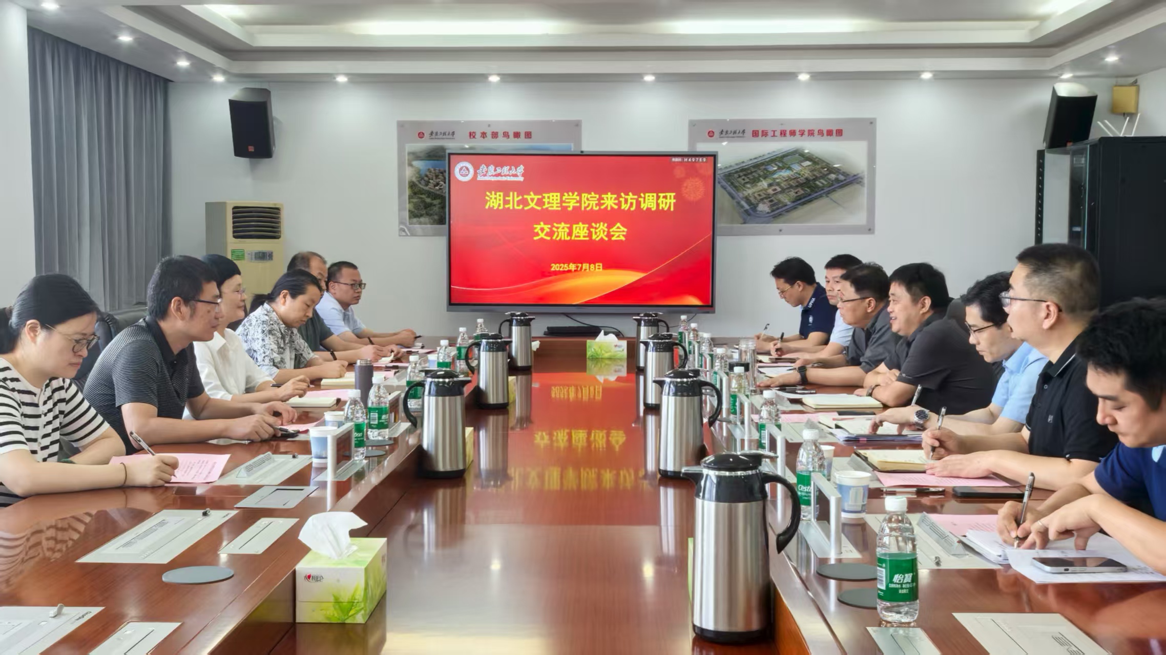 本网讯 7月8日,湖北文理学院党委常委、副校长秦军荣一行来校调研交流,校党委常委、副校长张开炳出席并主持会议,有关学院和部门负责人参加。
