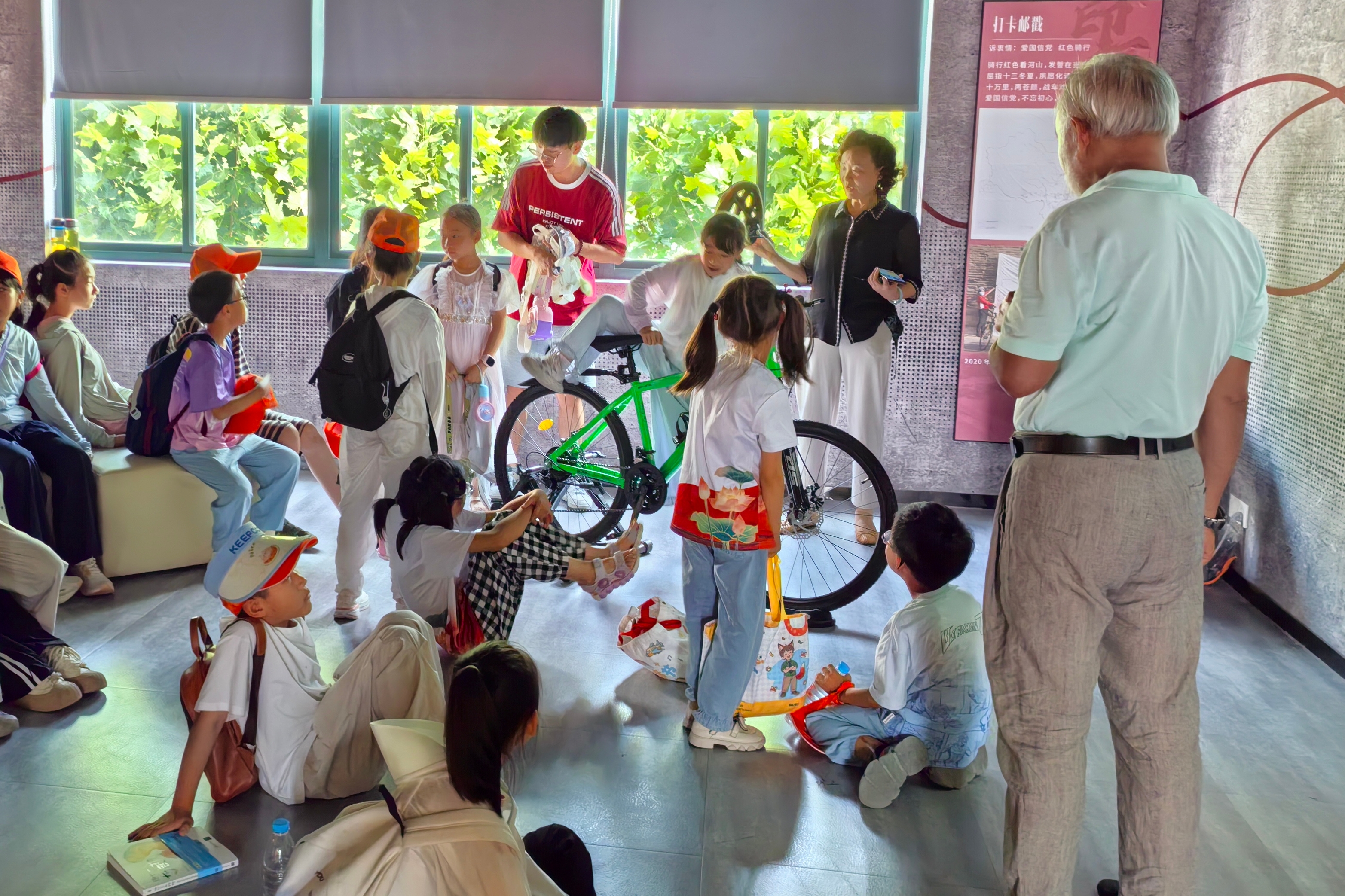 在骑行体验中,同学们纷纷和赵爷爷、曹奶奶踊跃互动,大家不仅被赵爷爷、曹奶奶战胜千难万险、坚持13年红色骑行的故事所打动,同时也被红色故事中的英雄事迹所感动。他们纷纷表示,革命英雄们真了不起,我们要向他们学习!