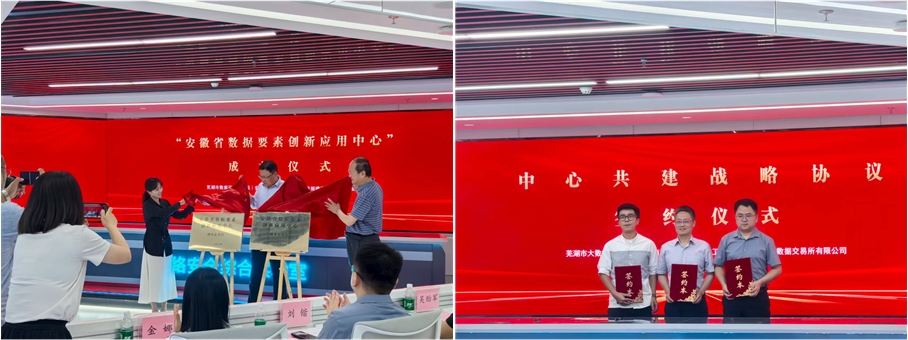 杨俊与胡蓉、计算机与信息学院院长汪军共同为中心揭牌,并签署了战略合作协议。安徽省数交所市场负责人刘锴在仪式上分享了数据要素市场化价值化的探索实践。中心发布三大建设成果:市大数据公司与建设银行合作的“投标快贷”信用融资产品、徽投科技的数据资产全生命周期管理平台以及人保芜湖分公司全国首创的“数据资产保险”产品,为数据要素市场提供了创新解决方案。