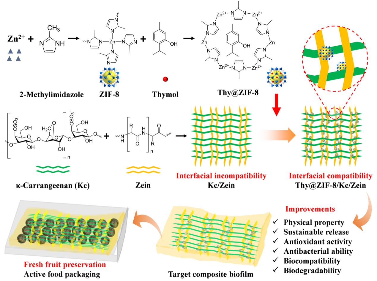 本网讯 近日,我校生物与食品工程学院生物载体材料工程方向(生物工程学科)葛飞教授团队的唐红进课题组在国际知名期刊《Carbohydrate Polymers》(中科院1区TOP期刊,IF=12.5)上发表题为“Preparation and characterization of thymol-loaded ZIF-8/κ-carrageenan/Zein composite film as active food packaging with enhanced functional properties for blueberry preservation”的最新研究成果。RayBetApp官网下载 为论文第一完成单位与通讯单位,生物与食品工程学院2025届生物与医药专业硕士研究生李会会为论文第一作者,唐红进教授为通讯作者。