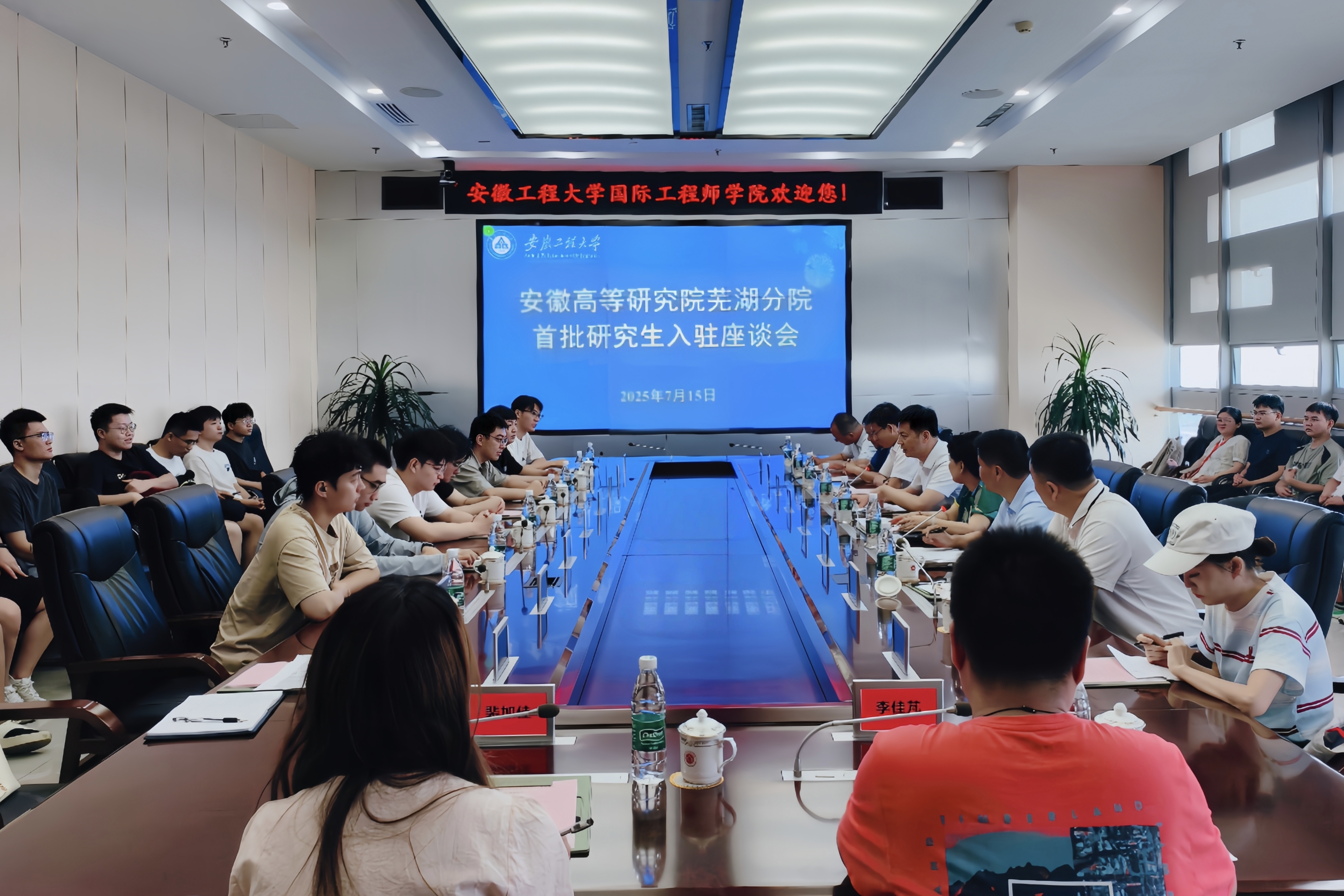 本网讯 7月15日,教育部安徽高等研究院芜湖分院首批入驻的研究生代表座谈会在国际工程师学院校区图文信息中心701会议室召开。校党委常委、副校长凤权,芜湖市产业创新中心党组成员、副主任葛雯,埃夫特智能机器人股份有限公司研发总工程师肖永强出席会议。国际工程师学院校区管委会、卓越工程师学院(奇瑞学院)负责人及首批入驻的硕士和博士研究生代表参加。