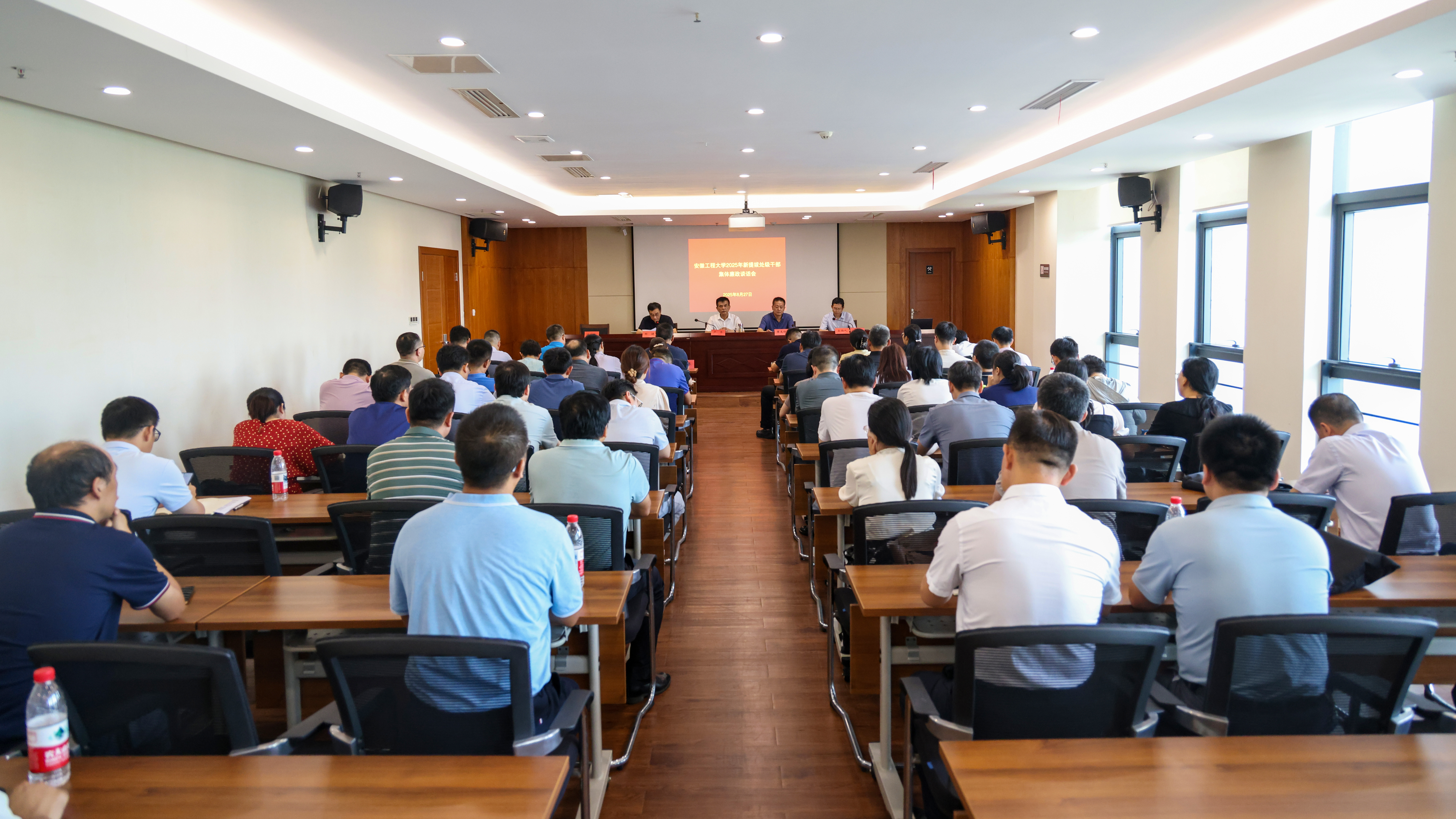 本网讯 8月27日,学校在芜湖市反腐倡廉教育馆组织开展新任职处级干部集体廉政谈话。校党委书记卢平,校党委副书记、校长黄友锐,党委副书记郑健,校党委常委、纪委书记、监察专员程双四,芜湖市委常委、纪委书记、监委主任吴祚麓参加活动。