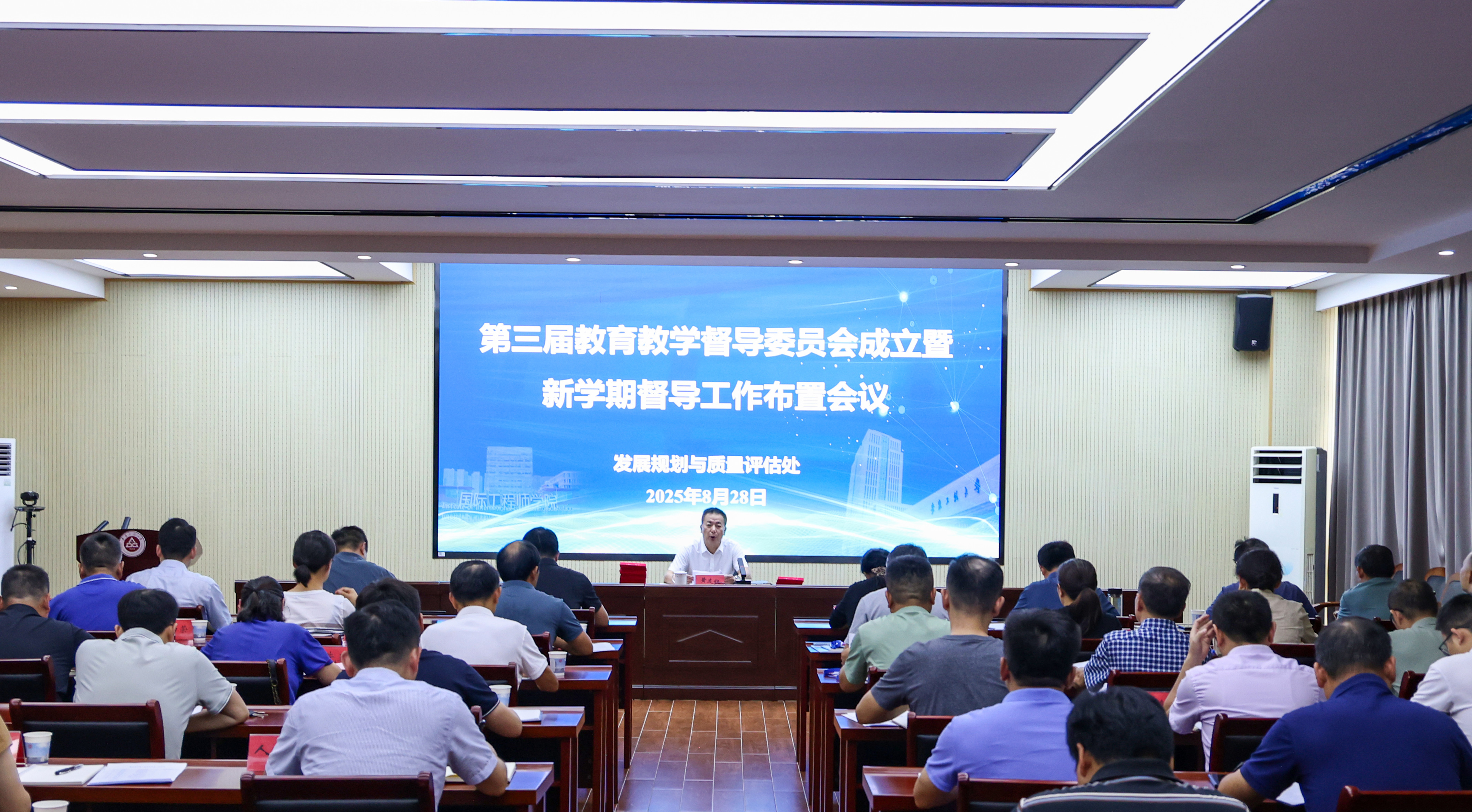 本网讯 8月28日,学校第三届教育教学督导委员会成立暨新学期教学督导工作部署会在A座1314会议室召开。校党委副书记、校长黄友锐出席并主持会议,校第三届教育教学督导委员会督导专家、各学院教学院长、相关职能部门负责人参加。