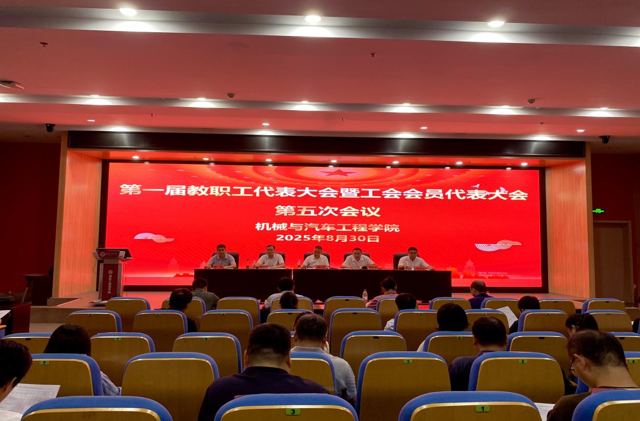本网讯 8月30日,机械与汽车工程学院在国际工程师学院校区召开第一届教职工代表大会暨工会会员代表大会第五次全体会议,学院党政领导班子、两代会代表、特邀代表参加会议。大会预备会议和第一阶段会议分别由院党委书记魏长顺,院党委副书记、院长潘家保主持。