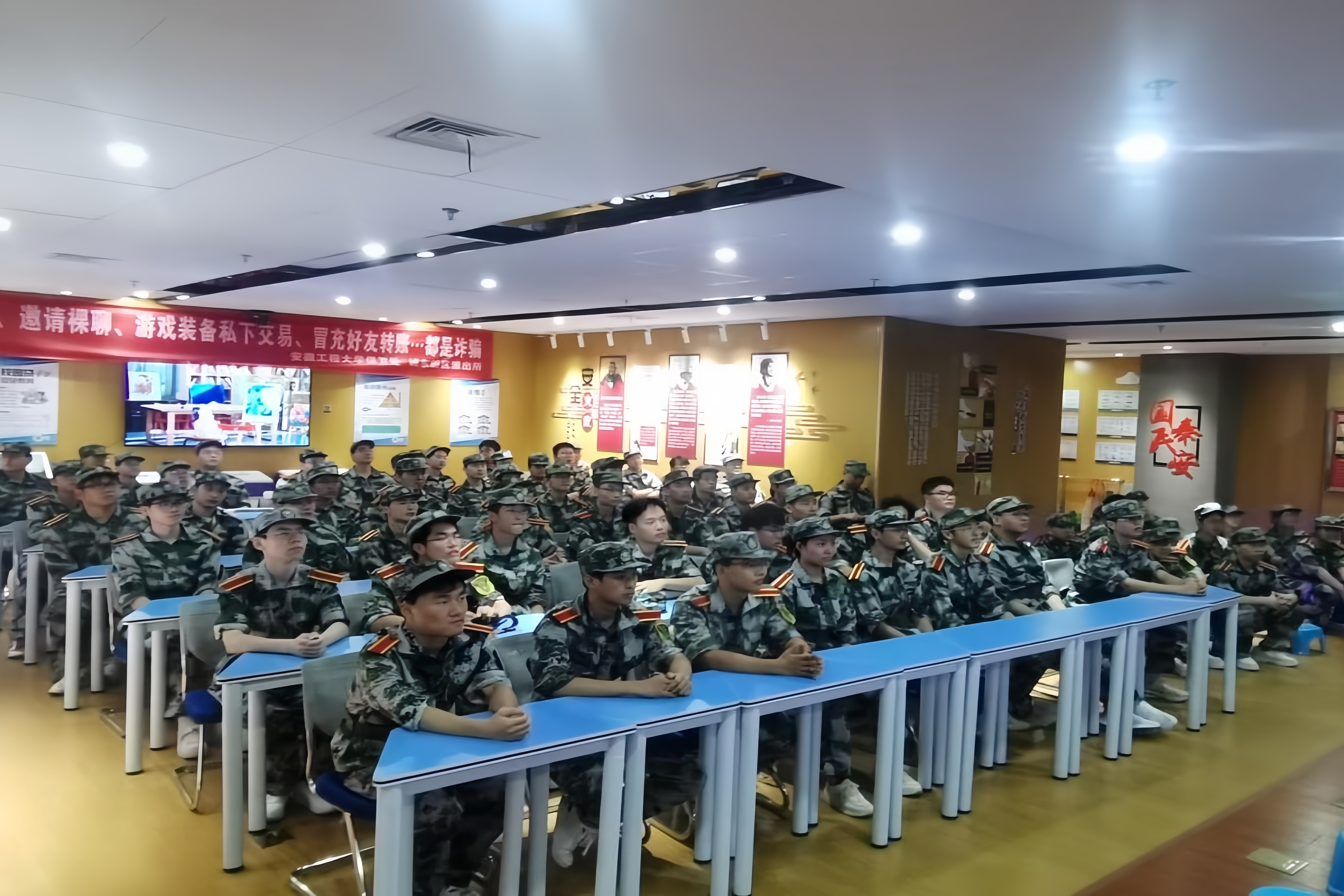 本次实训内容紧密结合校园实际,聚焦大学生群体中高发的安全风险,重点围绕预防电信网络诈骗、消防安全、国家安全、应急疏散和急救知识、反邪教知识等模块展开。授课人员以校园内发生的真实案例为素材,用通俗易懂的语言剖析了常见电信网络诈骗手法和防范要点,详细拆解了诈骗流程,提供了具体实用的应对策略和自我保护建议,有效提升了学生的认知辨别能力。实训现场气氛活跃、互动频繁,参与实训的同学们纷纷表示,本次“安全教育第一课”形式新颖、内容充实、案例鲜活,令人印象深刻。