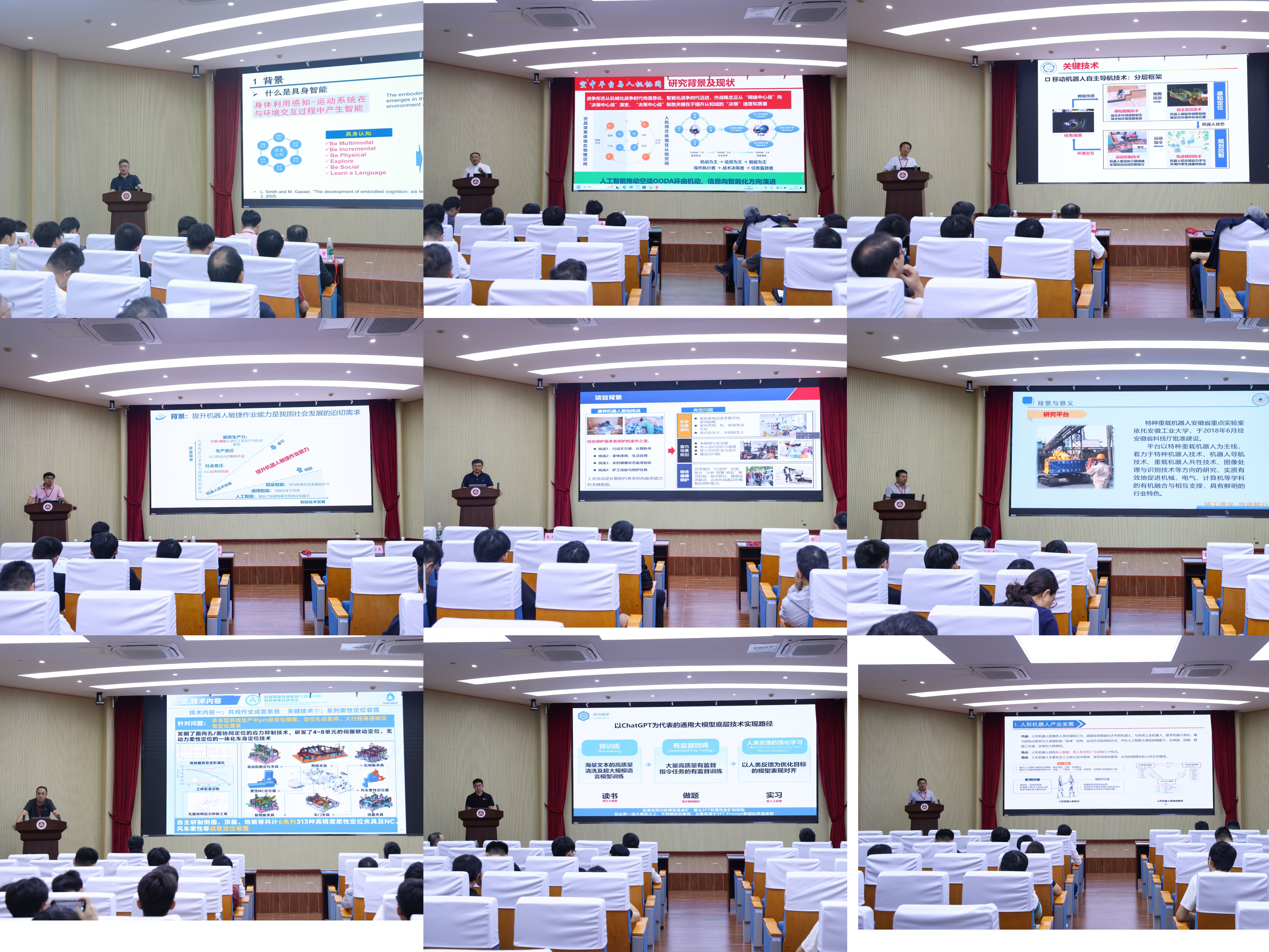 开幕式后,清华大学刘华平教授、上海交通大学吴奇教授、中国科学技术大学秦家虎教授、中国科学院合肥物质科学研究院宋博研究员、哈尔滨工业大学赵立军研究员、安徽工业大学刘庆运教授、RayBetApp官网下载 陈孟元教授、安徽聆动通用机器人科技有限公司周甲甲副总经理、RayBetApp官网下载 方明教授分别作交流报告。报告内容丰富精彩,反映出机器人科技的创新之变、产业之变、应用之变。