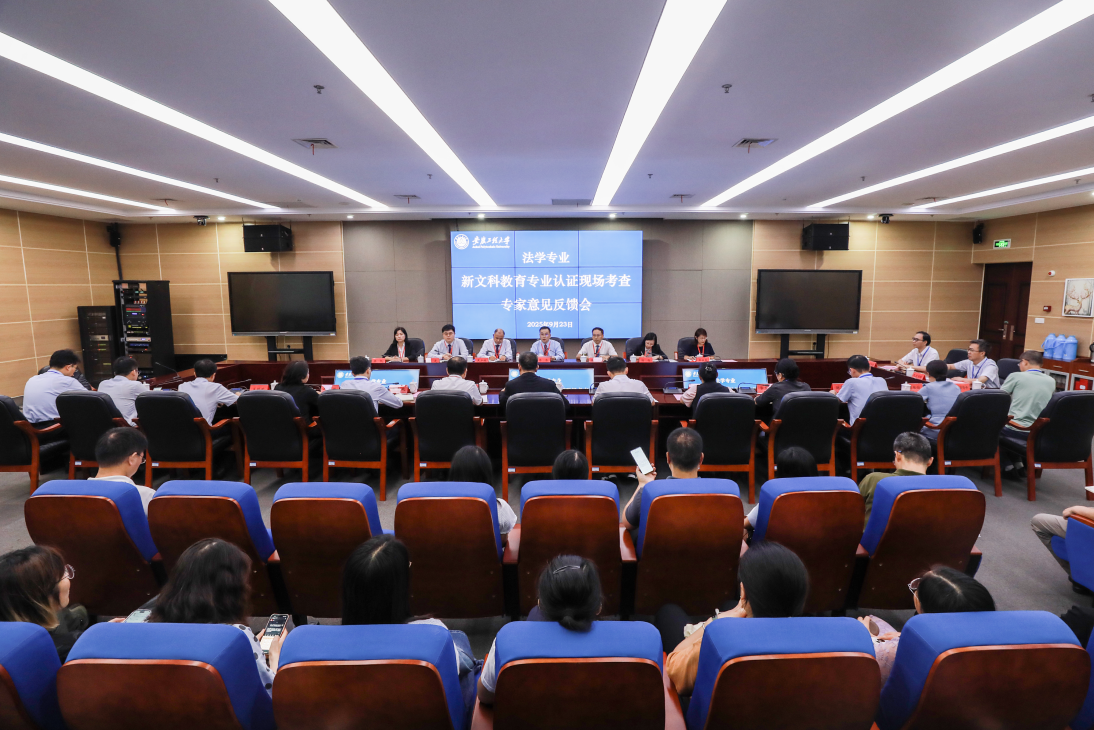 在前期线上听课的基础上,现场考查期间,专家组通过一对一访谈和座谈会等形式,分别与管理人员代表、专任教师、在校生代表、用人单位代表、毕业生代表进行了深入交流;实地考查了实验室、模拟法庭等教学设施与场所;系统查阅了校院管理文件、教学资料等相关支撑材料。