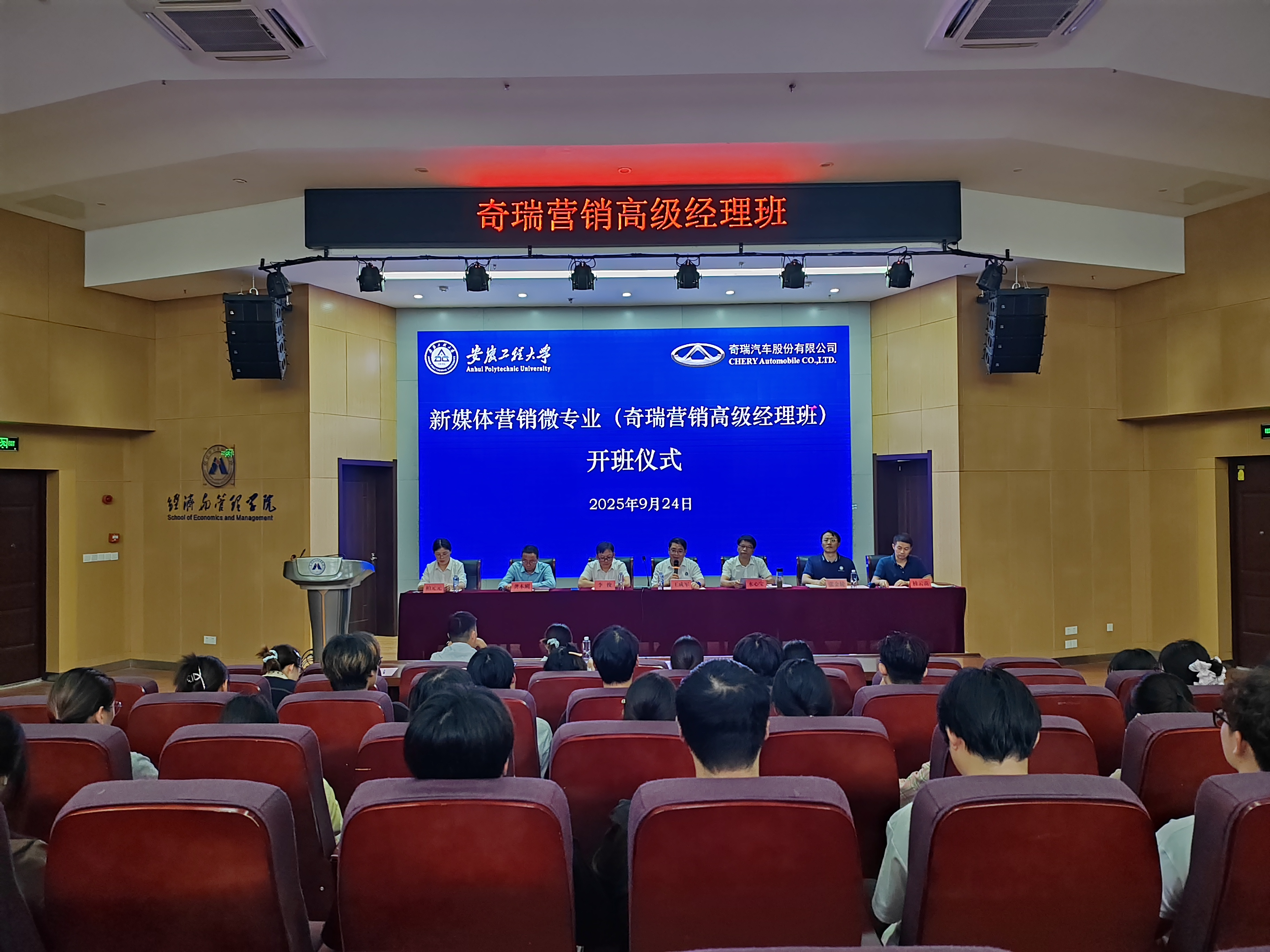 王成军回顾了近年来学校建设发展情况和取得的成效。他指出,新媒体营销微专业是一次校企合作的深度牵手,是推进学校个性化人才培养改革、主动拥抱数字经济浪潮、精准培养复合型人才的有效探索。他要求同学们,保持“空杯心态”、虚心求教,认真汲取企业导师的实战经验,多听、多问、多思考;敢于“主动破局”、大胆创新,扎实掌握营销理论,结合年轻人的视角与创意,为奇瑞的新媒体营销出谋划策,注入新鲜活力;树立“长期主义”、深耕品牌价值,理解品牌背后的价值逻辑,成长为既懂技术又懂用户、既会传播又能创新的复合型人才。