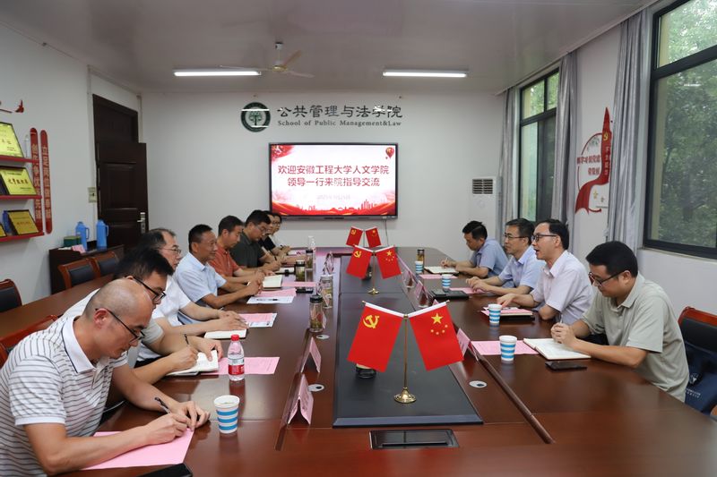 本网讯 9月25日,人文学院党委书记刘一,党委副书记、院长刘军一行四人赴安徽工业大学公共管理与法学院调研交流。安徽工业大学公共管理与法学院党委书记胡正友,副院长王务均及相关系部负责人,人文学院副院长张勇及相关系部负责人参加交流会。